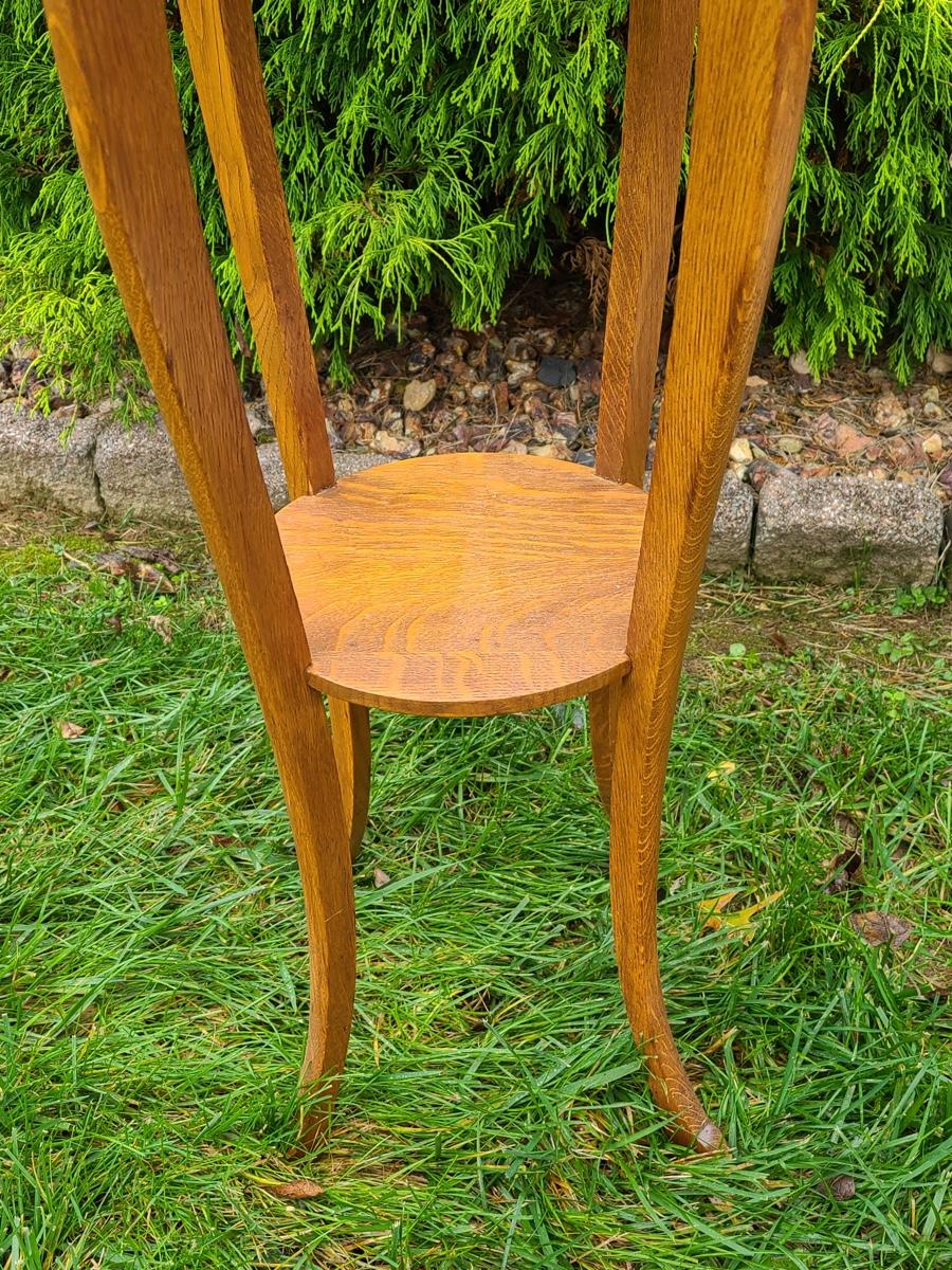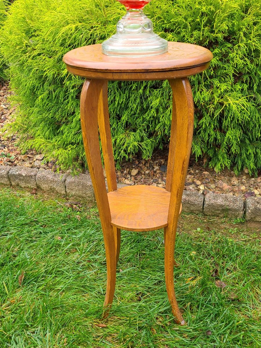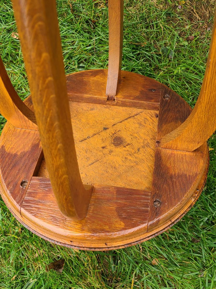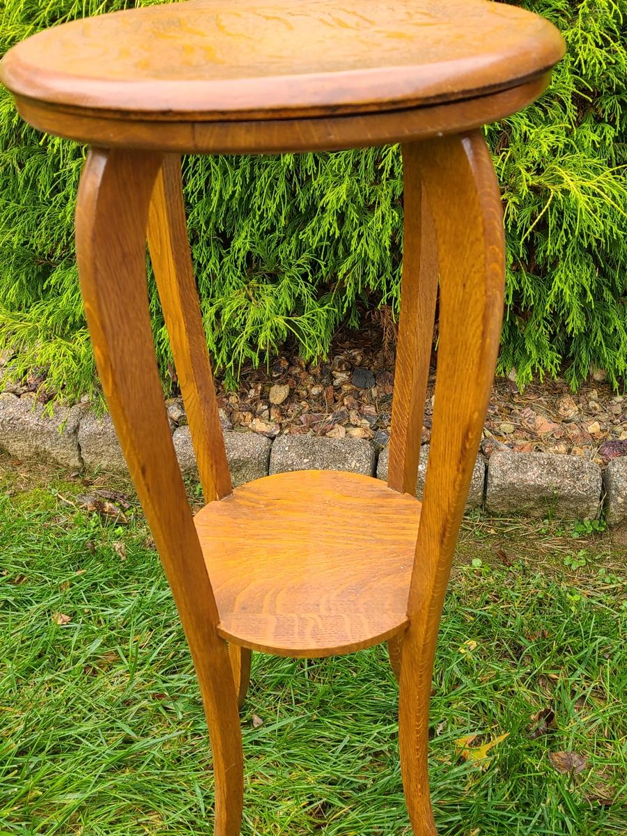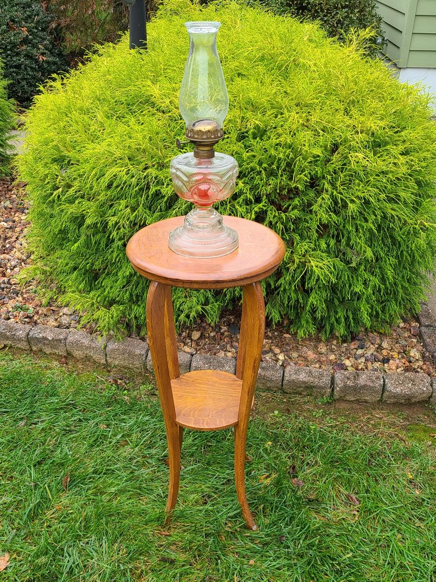 Vintage tall oak stand used as side table for lamp or plant, this is solid wood, but could use a light tightening. The lamp has eagle on turn switch. Please see all pictures as they are the best representation of the items. The pictures show condition, measurements if taken, and what is included in the lot. Due to the large amount that we photograph and the time frame, we are not always able to take measurements. All items unless noted, are pre-owned and have been used. If you purchased furniture, you must bring help. We do not allow one person to carry large furniture out on their own. Bring help, tools and a truck for the safety of our client’s homes, and your personal safety. Company policy. Thank you.
