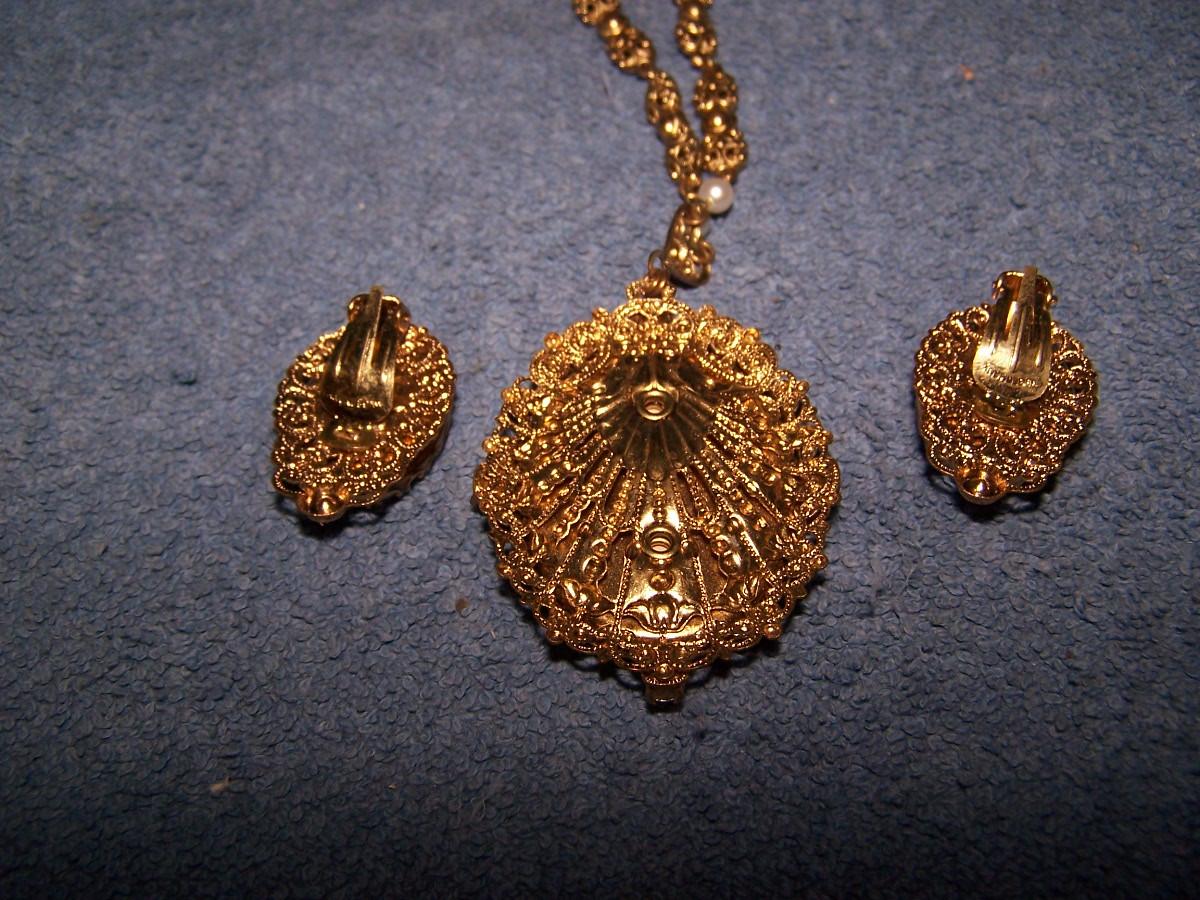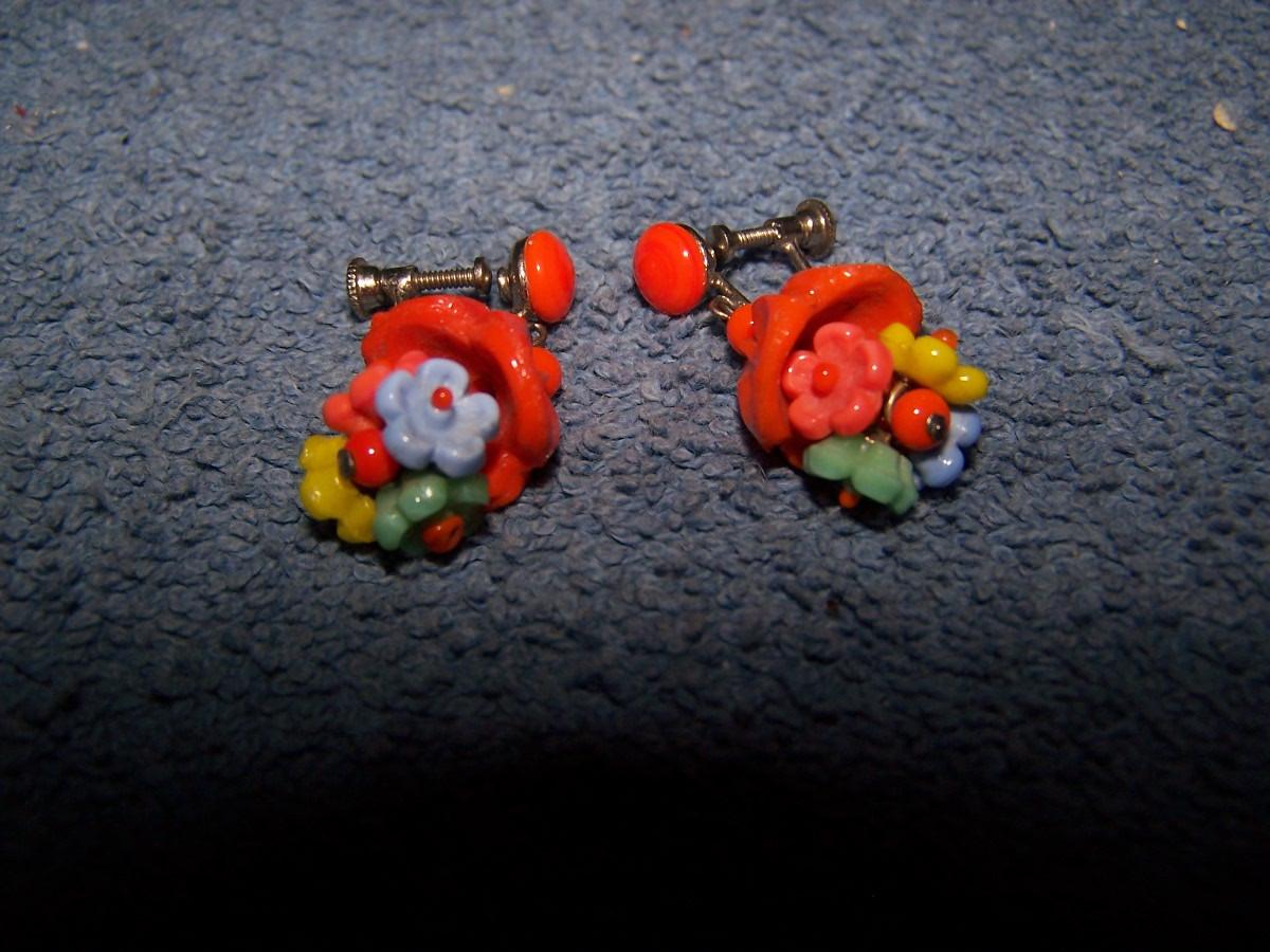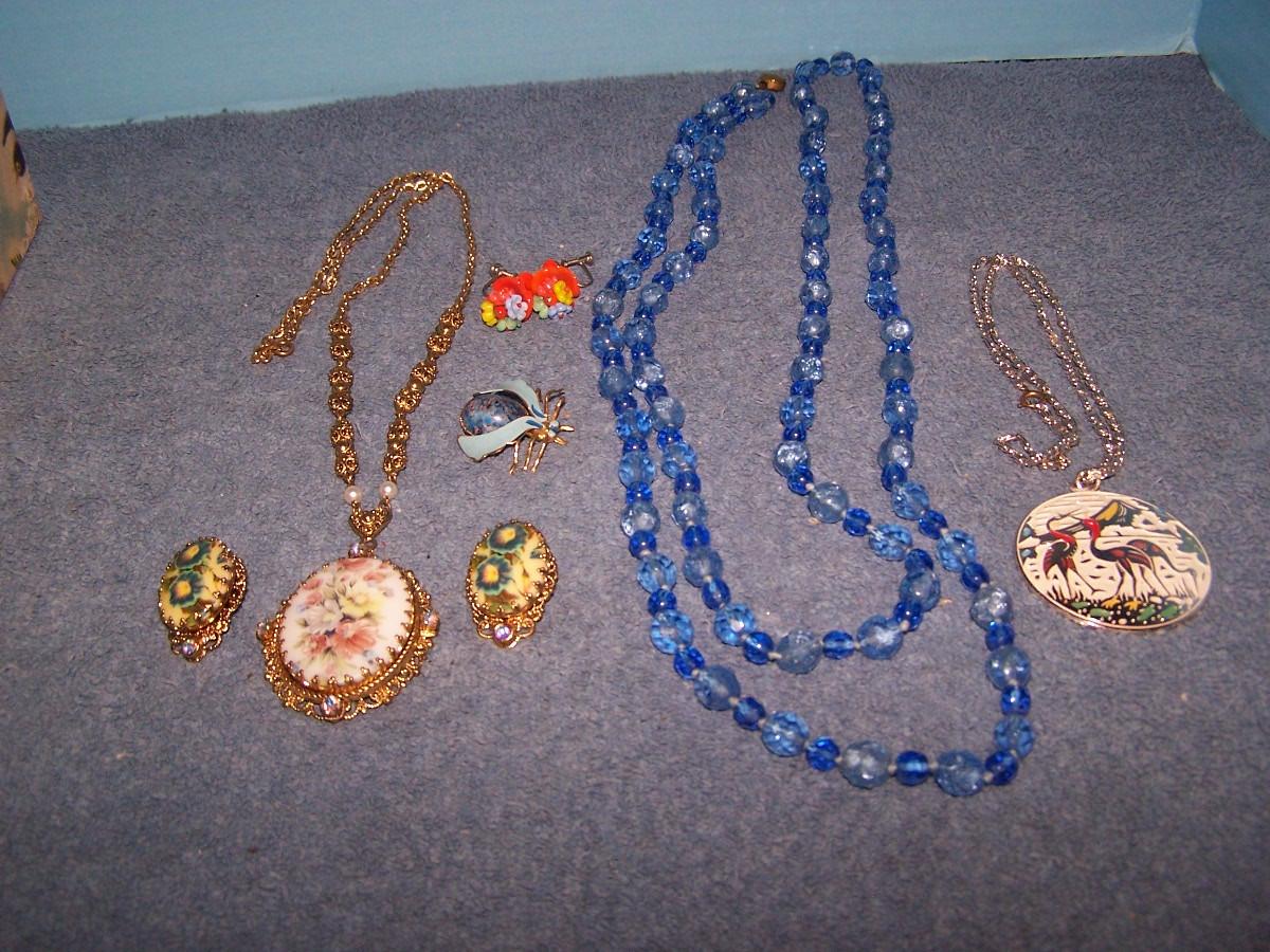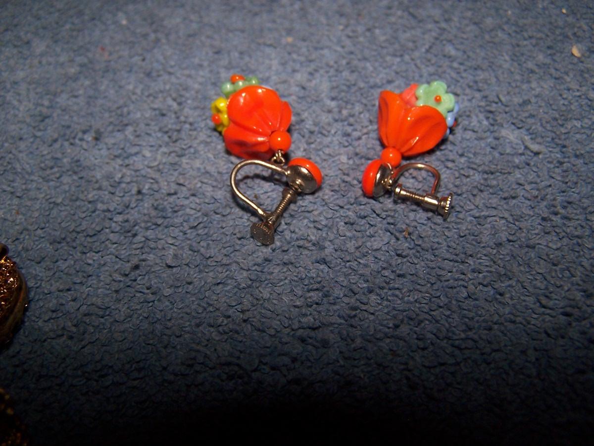 THIS IS SOME WONDERFUL VINTAGE SIGNED JEWELRY!!! ORANGE EARRINGS ARE CZECH... BLUE GLASS BEAD NECKLACE NEEDS TO BE RETIED, OTHERWISE, LIGHT WEAR..