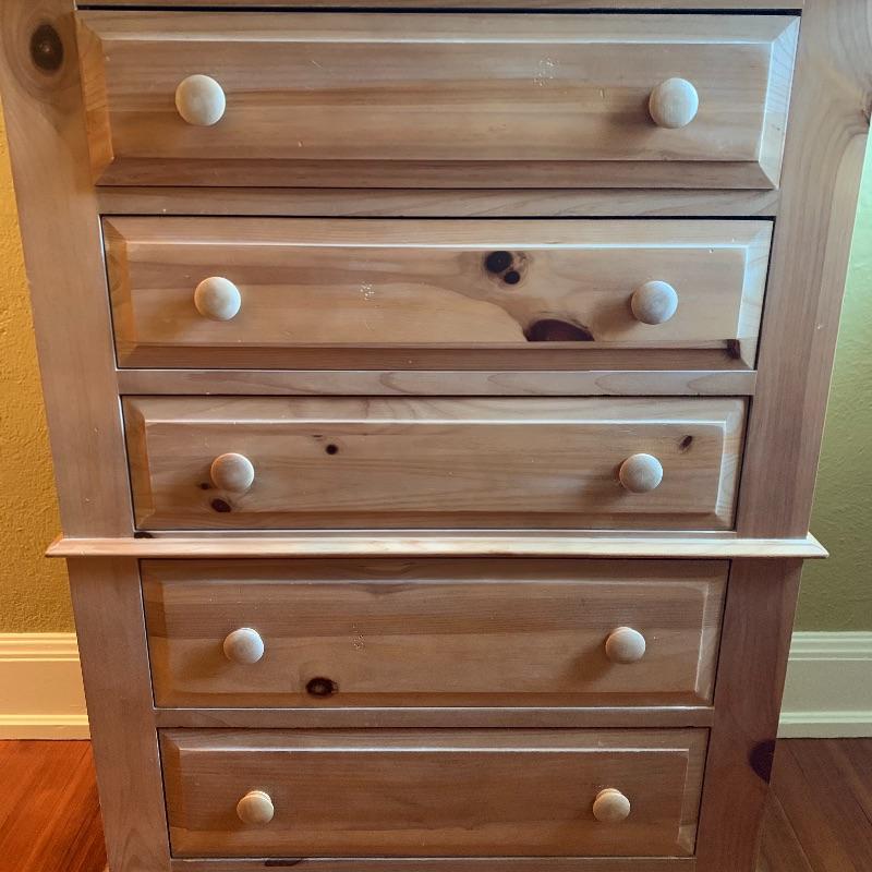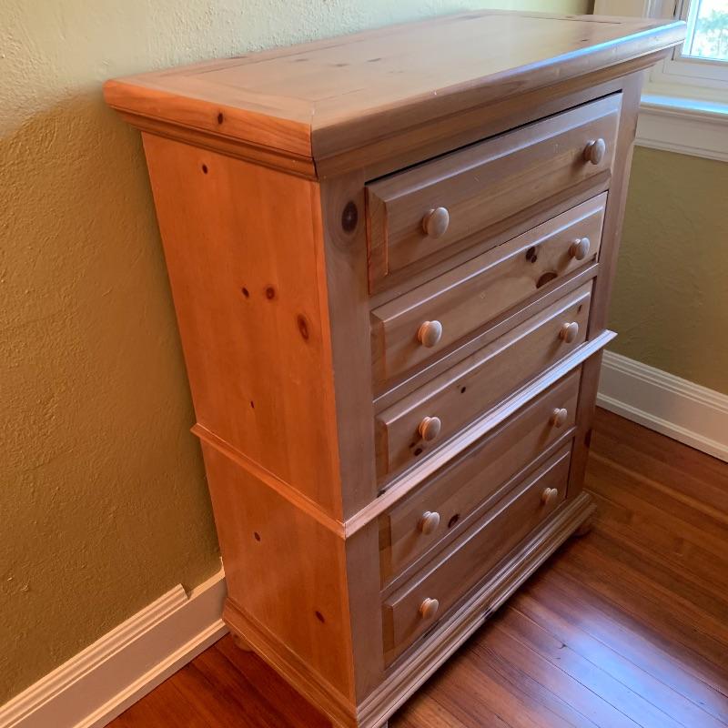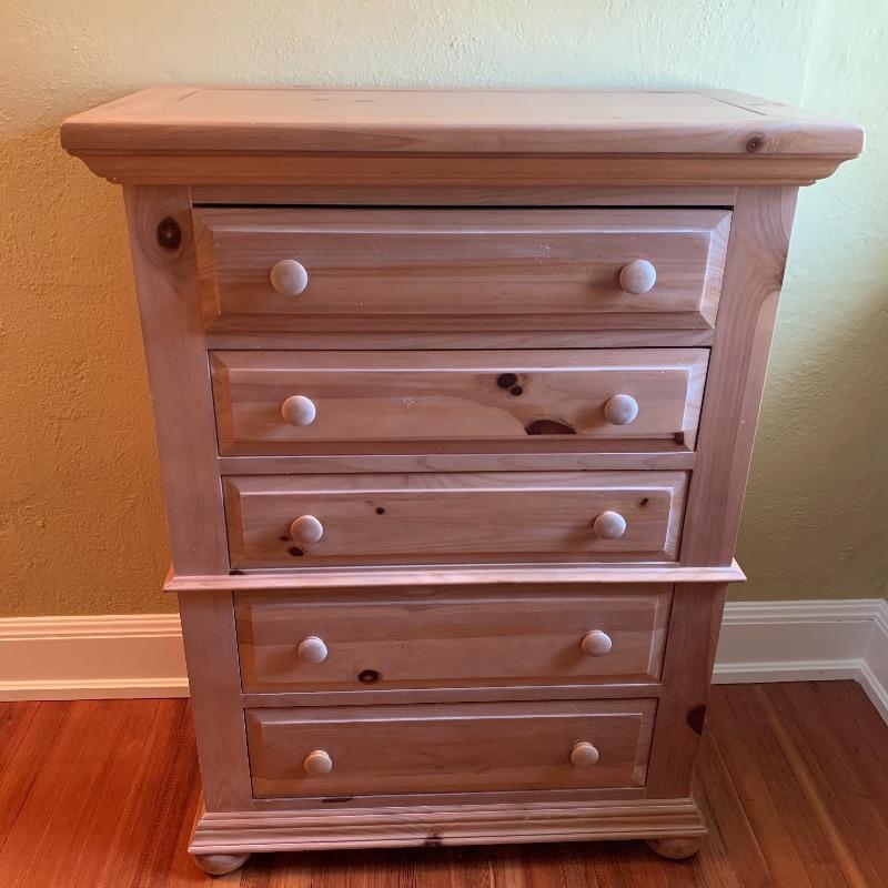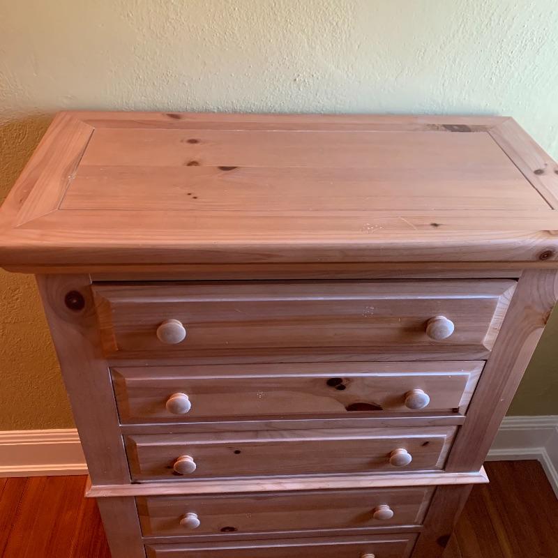 Nice wooden Broyhill dresser with five drawers. Measures 36.5” x 18.5” x 48.5”. The inside of the drawers measures 23.5” x 13.5”. Will not need to be disassembled, but buyer will need to move from top floor of house. Local pickup only.