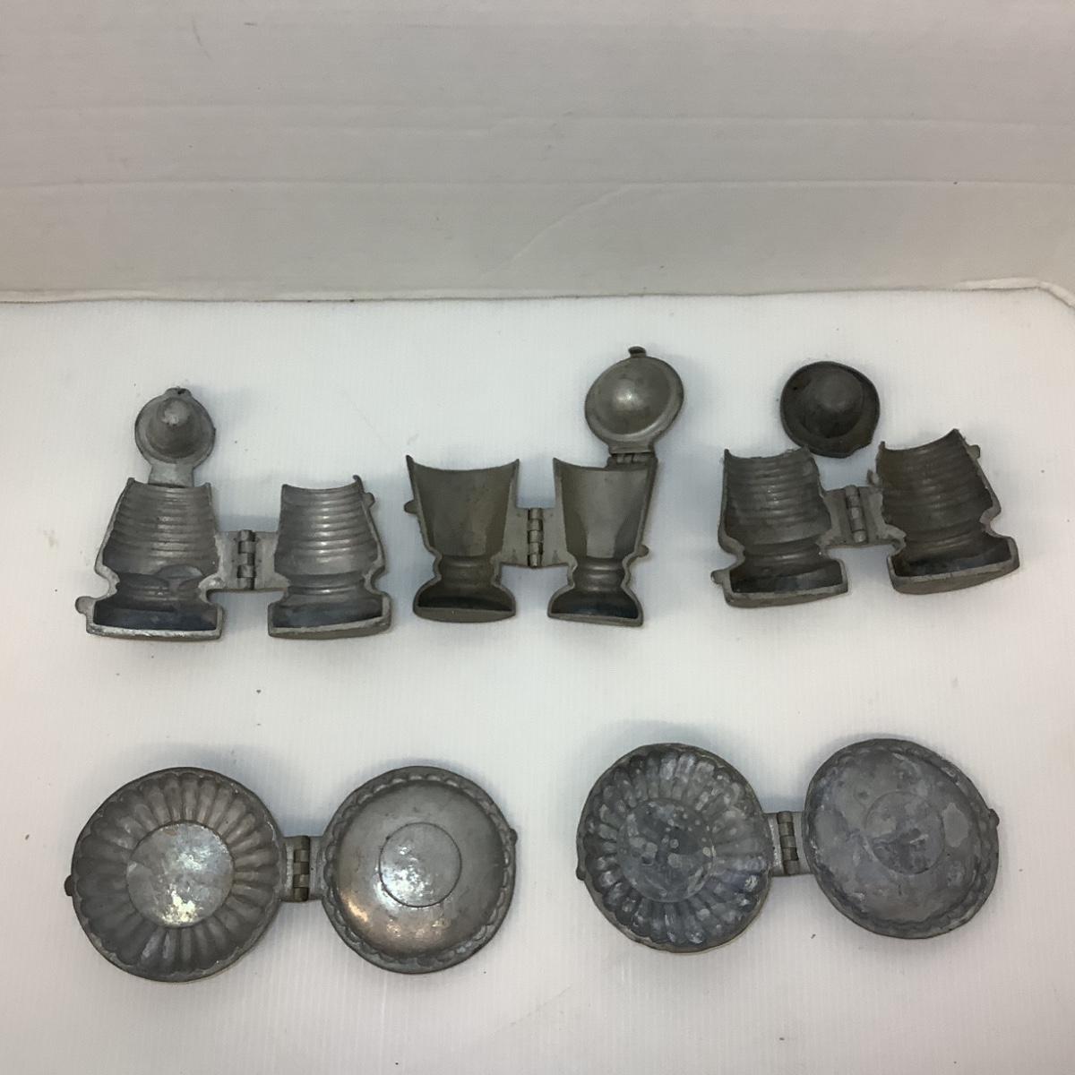 Antique Hinged Pewter Eppelsheimer Ice Cream MOlds, molds are from Arundel Ice Cream Company in Baltimore MD, active in the 1940’s & 1950’s