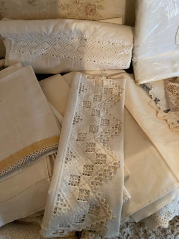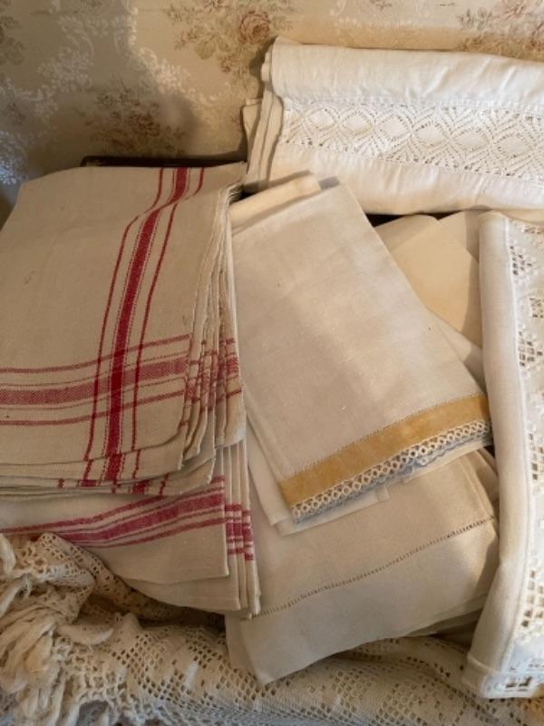 Lot 124B1. Assorted linens“”napkins, bedding, kitchen towels, etc.--$45