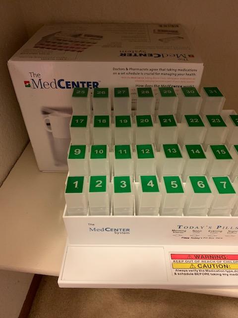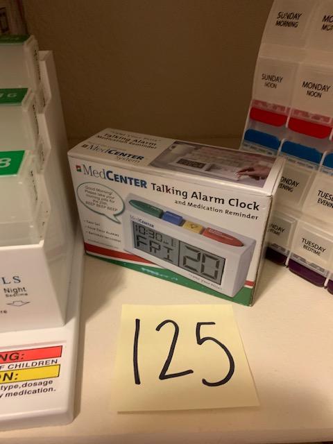 The Med Center pill separator, another pill separator, and Med Center talking alarm clock