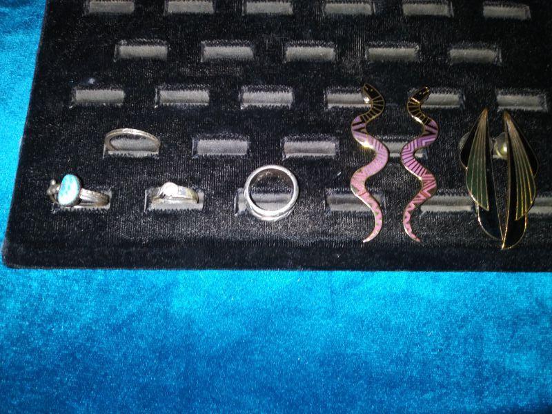 THE TURQUOISE RING WITH THE UNIQUE BAND IS NOT MARKED BUT I'M FAIRLY CERTAIN THAT IT IS ALSO .925