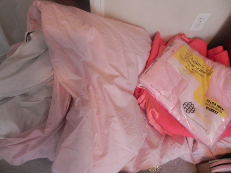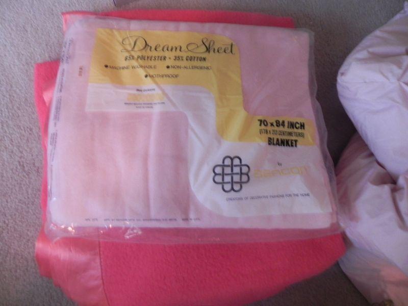 TEAL AND WHITE COMFORTER DBL. PINK DUVET, BLANKET (NIB) AND DOUBLE SIZE DOWN COMFORTER