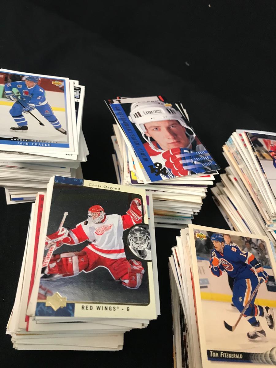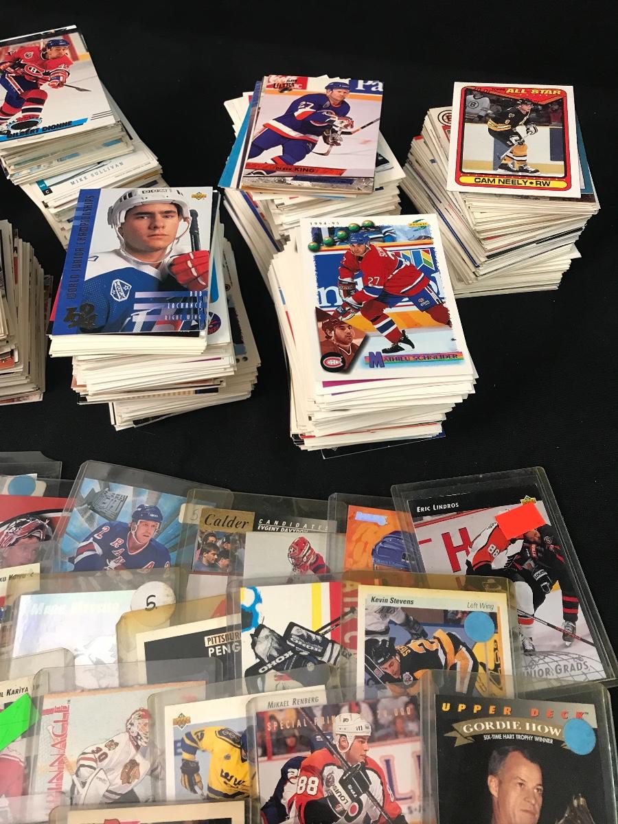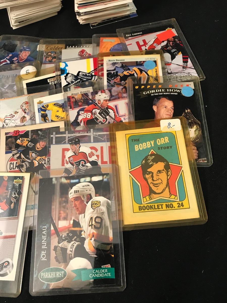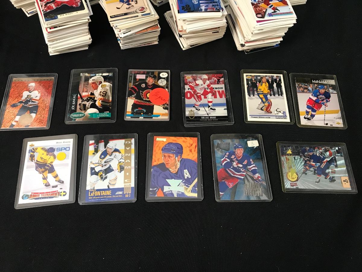Hockey Cards - Messier, Lemieux, Lindross & More. Cards in Varying condition. Please see all pictures as they are the best representation of the items. The pictures show condition, measurements if taken, and what is included in the lot. Due to the large amount that we photograph and the time frame, we are not always able to take measurements. All items unless noted, are pre-owned and have been used. If you purchased furniture, you must bring help. We do not allow one person to carry large furniture out on their own. Bring help, tools and a truck for the safety of our client’s homes, and your personal safety. Company policy. Thank you.