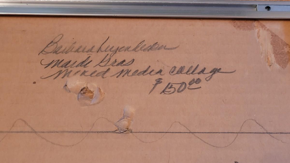 Barbara was a Professional Artist that exuded talent. She taught at the School of the Art Institute of Chicago and also at Front Range. She exhibited all over the United States. A collection of her work will be listed in the auctions we are hosting. She worked in and mastered several different mediums. Find a piece that you enjoy and get one of Barbara's artworks for your own collection. Excerpt from Art Lab Fort Collins Past Exhibition: In Barbara’s own words: I always like to experiment with and change how I express myself in my art. This process involves not only which medium I choose but also how I use it, andI often select more than one medium at a time. Whether I paint on paper or canvas, draw, etch, or collage photographs depends upon the idea or energy of my particular prevailing muse. My drawing is always a pivotal point for me, especially when I am working from the human figure. Regardless of the sujet, though, I use life experiences that have both emotionally and visually impacted me. I am always tempted to mix abstract thought with quasi identifiable subject matter. As I am writing this statement I am looking closely at the mountain that is directly across from my house, and as I watch, I see a jet aircraft’s white contrail moving far above the peak through the clear sky. I know it’s going hundreds of miles an hour, but the cottony contrail seems to be developing so very slowly. If I were to draw or paing this scene, I would need to make many decisions, starting with the desire not to render it only as I see it now but also to represent it as an experience that shows how t his kinetic and emotional vision has affected me. A major question would be, “Which medium (or media) should I use in order to express and communicate this experience?” The artists whom I have admired and learned from throughout history are those who get inside themselves and allow their thoughts and emotions to dominate their works. I believe it necessary that in order to create honesty, one needs to show how presenting the mess of things that constitute our lives can be seen in art that is essentially stable, coherent and believe it or not, realistic.