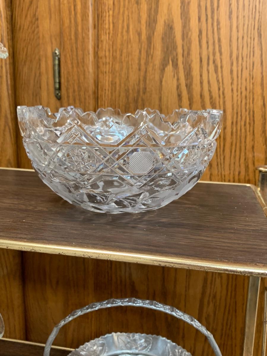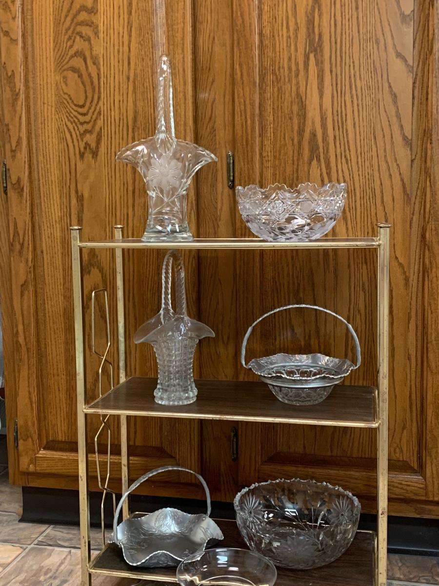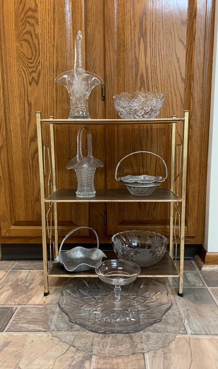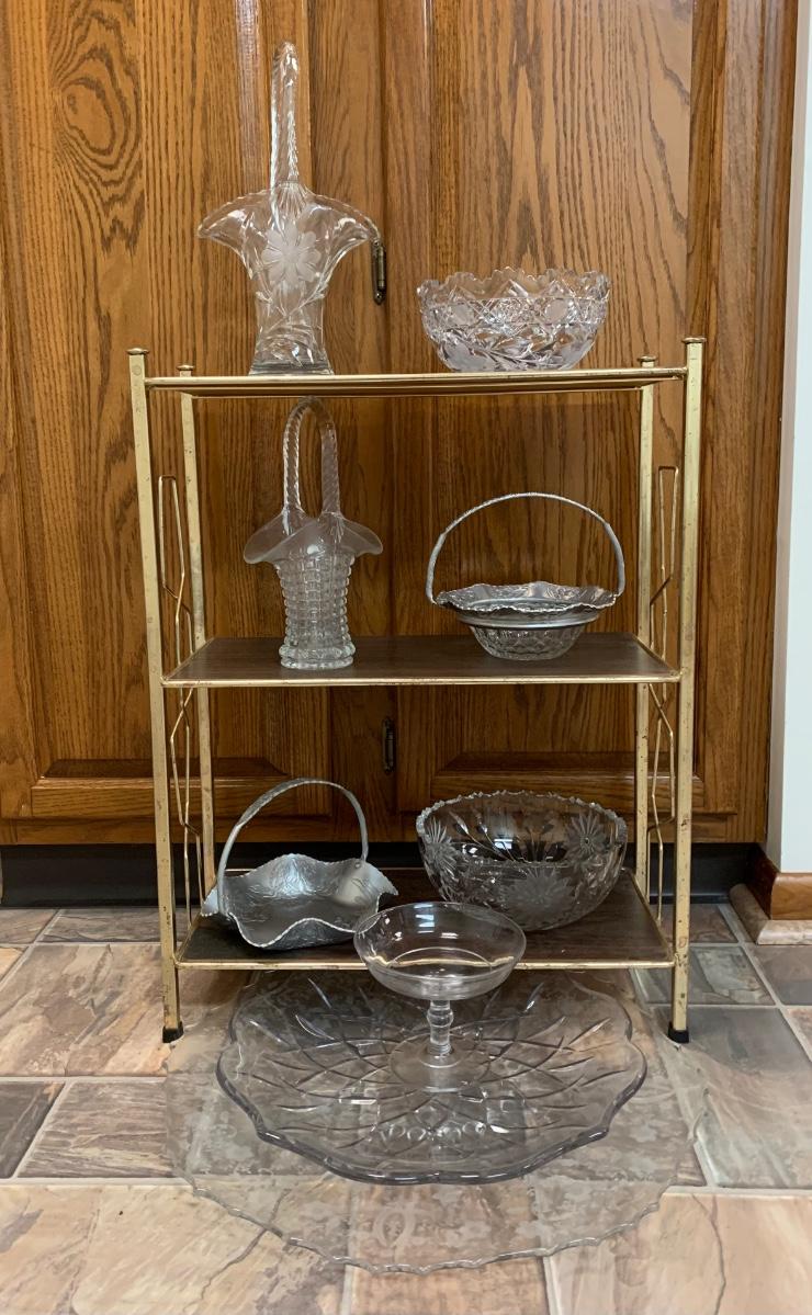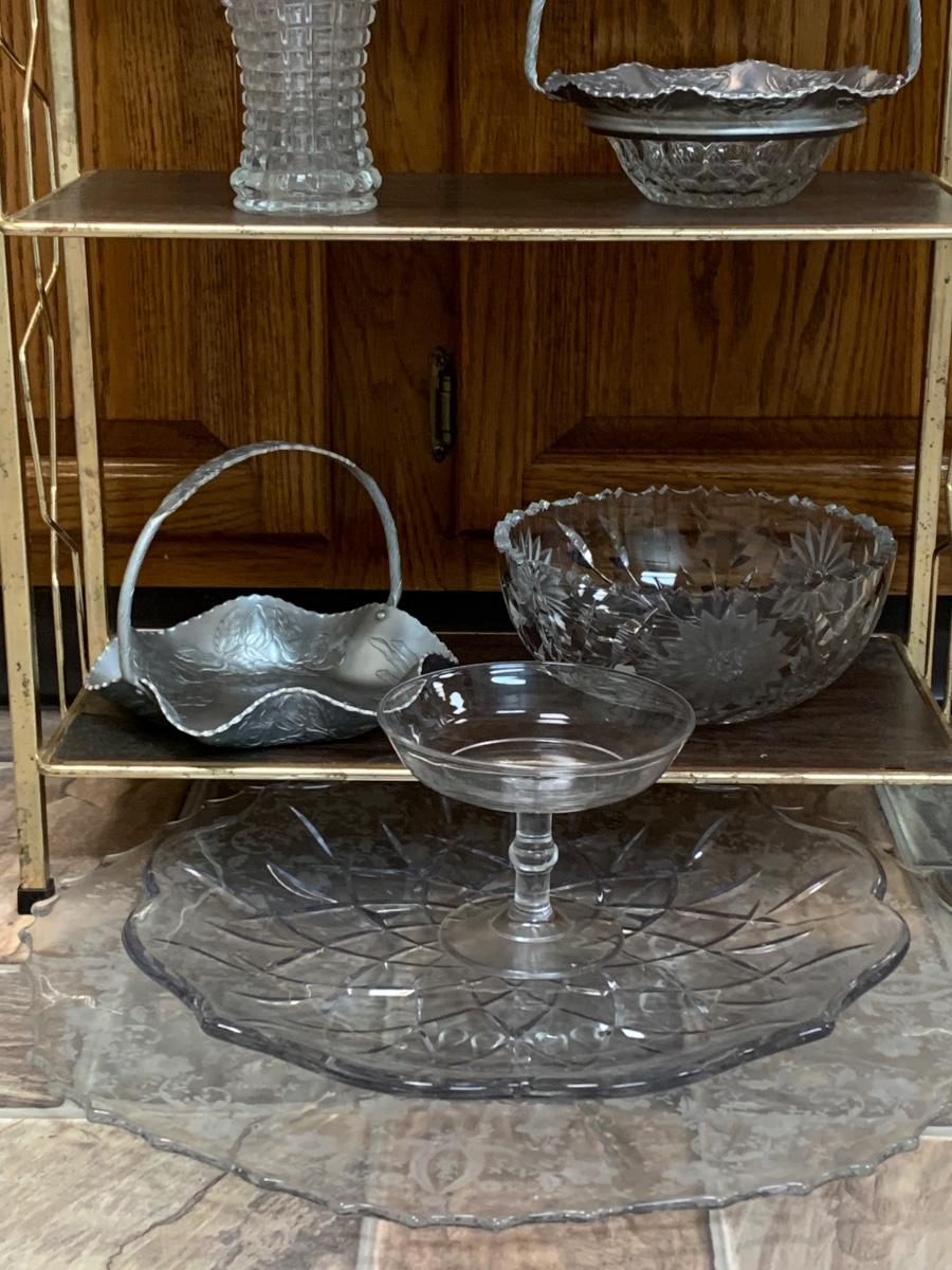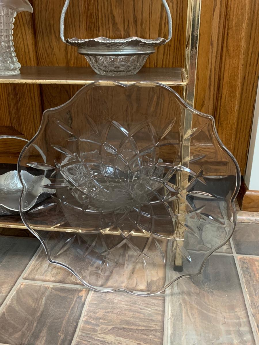 Lot 125: MCM Stand & Crystal Serving Pieces
