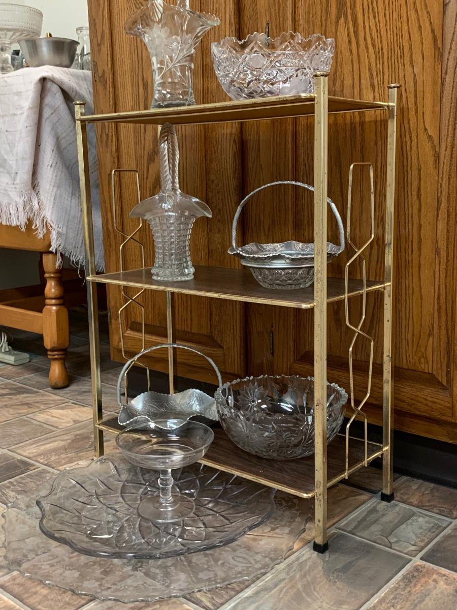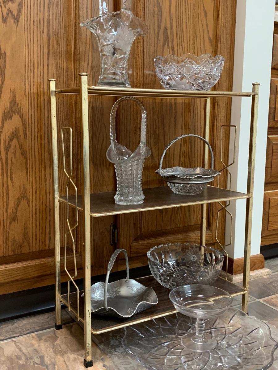 Eclectic collection of MCM and crystal.The shelf does show wear.