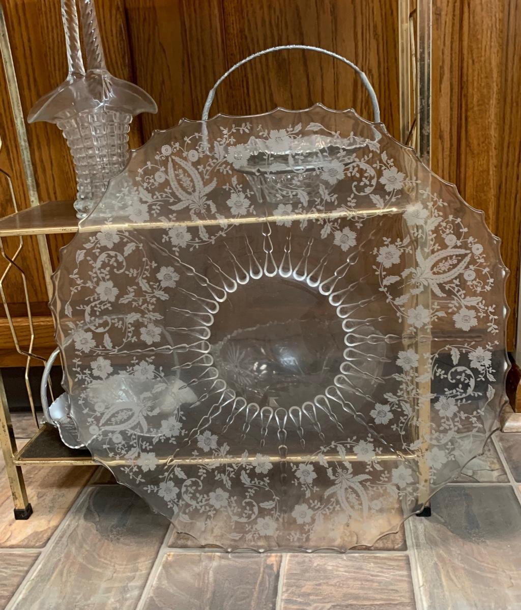 Lot 125: MCM Stand &  Crystal Serving Pieces