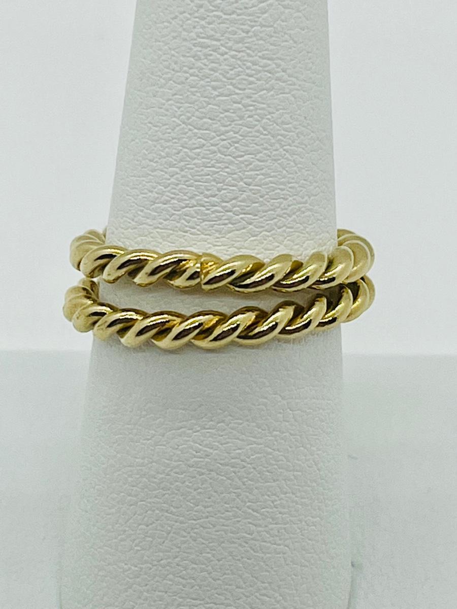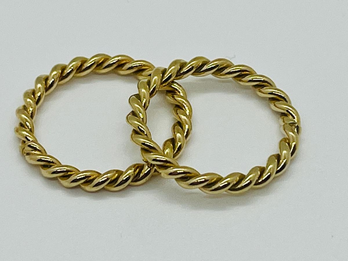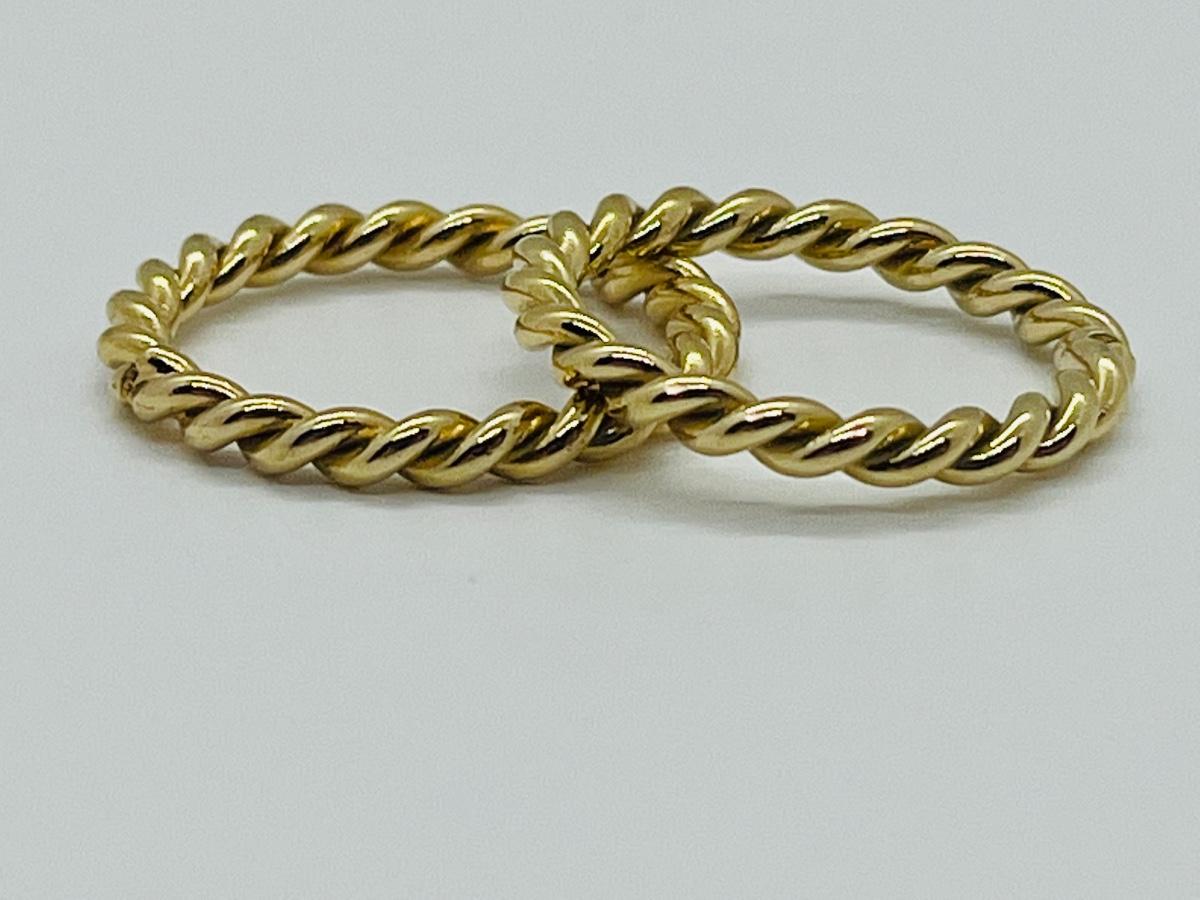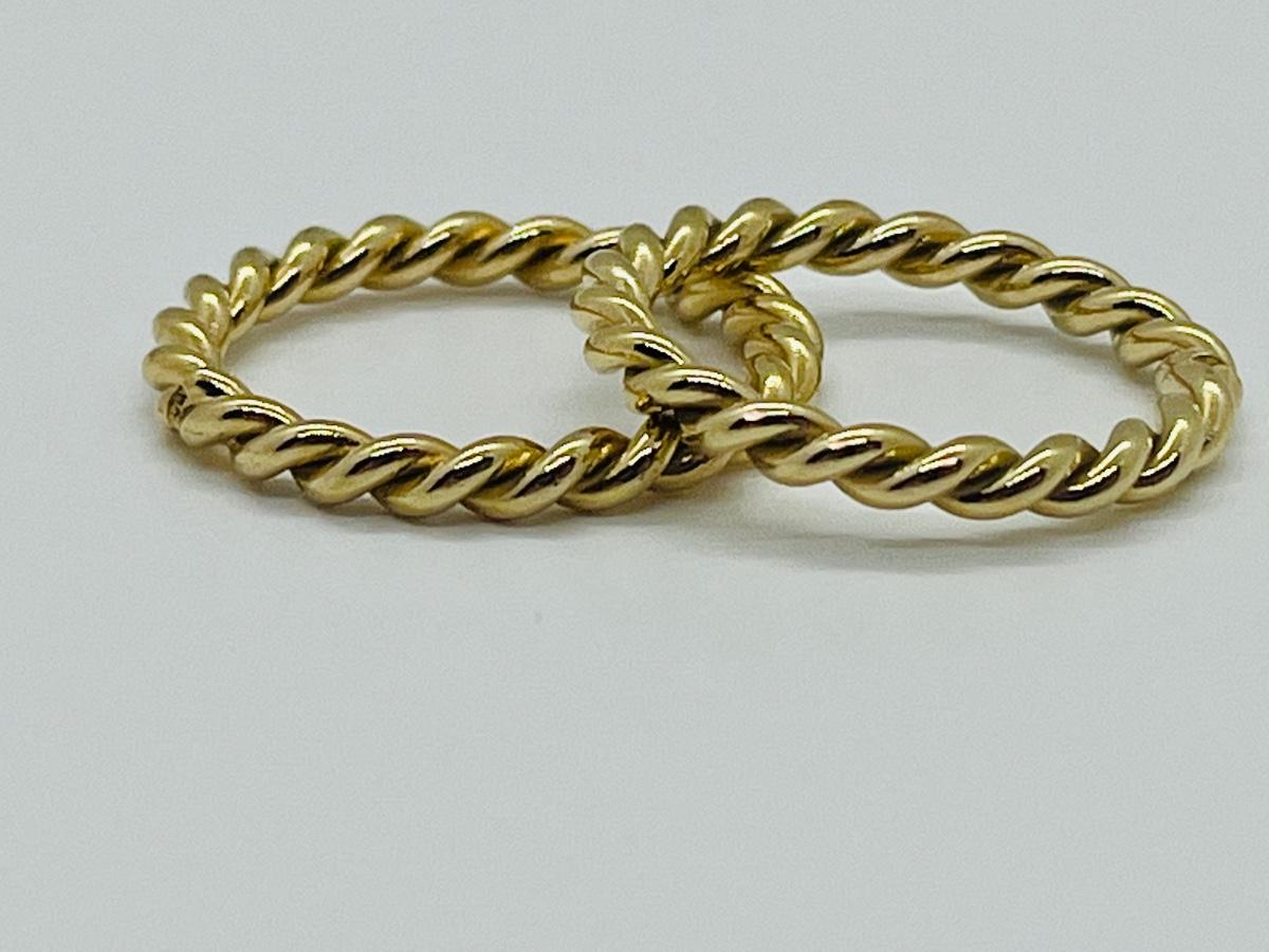 Two twist rings one size 7 is 2.1g, one size 8 is 2.2g, one solitaire CZ Ring size 8 is 1.2g and Blue Sapphire pendant 0.6g. All acid-tested as 10k gold The pictures show condition, measurements if taken, and what is included in the lot. Due to the large amount that we photograph and the time frame, we are not always able to take measurements. All items unless noted, are pre-owned and have been used, and are untested. Thank you