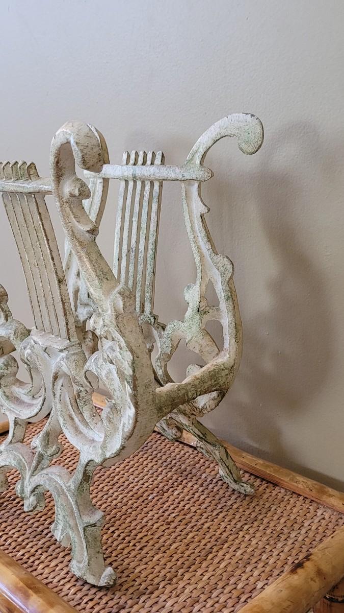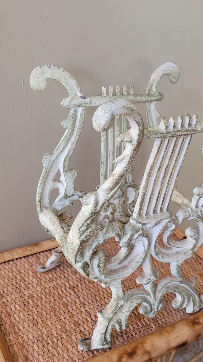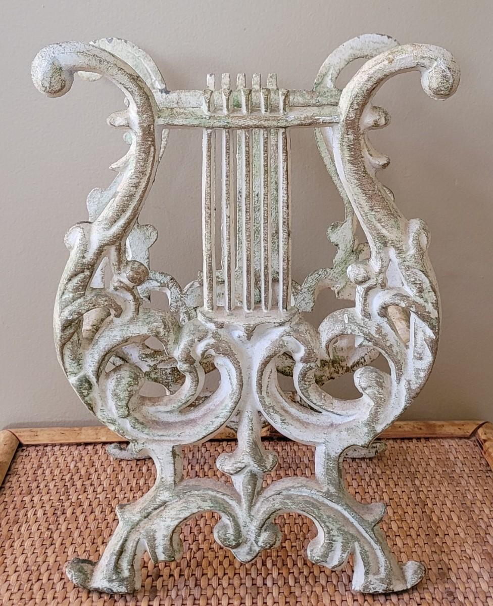 Lot 125: Vintage White Metal Cast Iron Lyre Harp Stand - Sheet Music, Magazine Stand