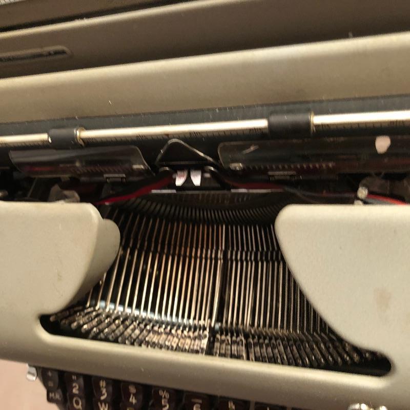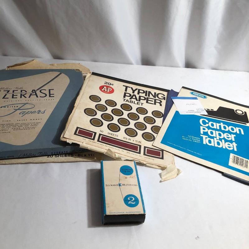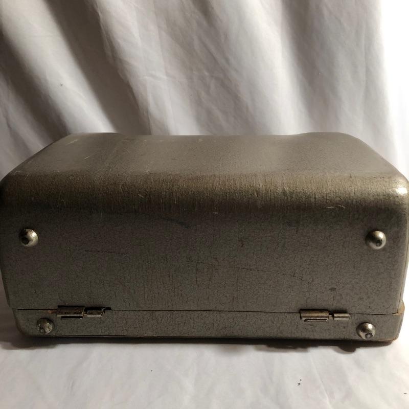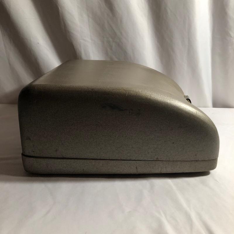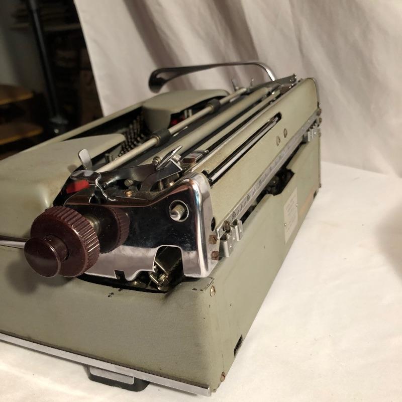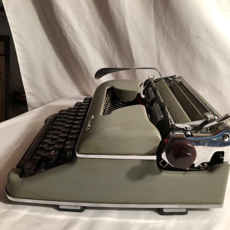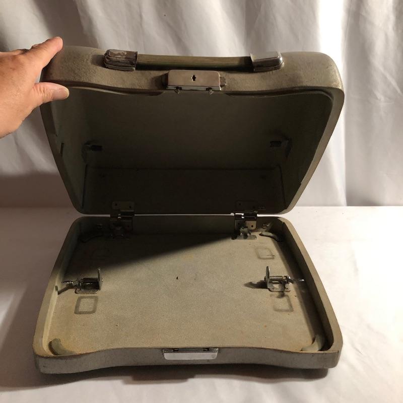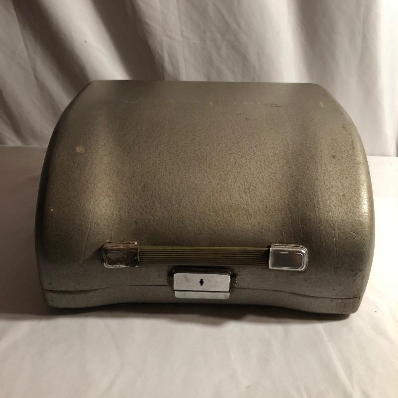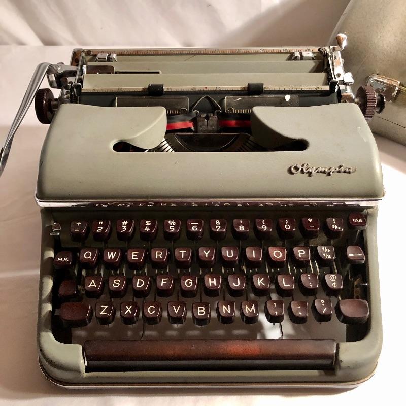 This antique Olympia typewriter comes with its original metal case for a complete “˜old school’ treasure! It appears to be in great shape, two latches hold it securely in its case. This lot also includes some typing paper and ribbon.