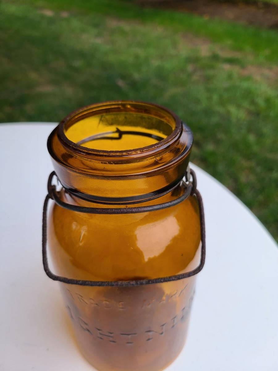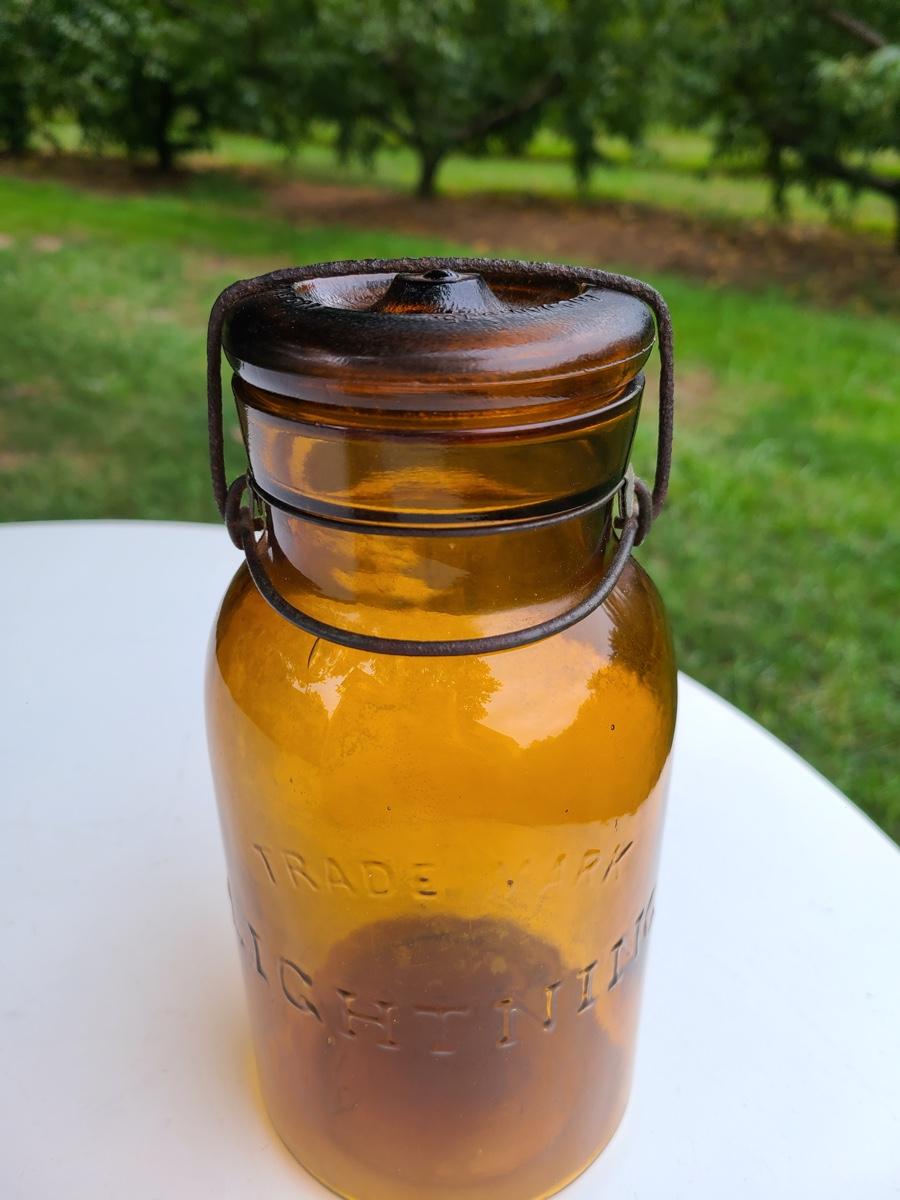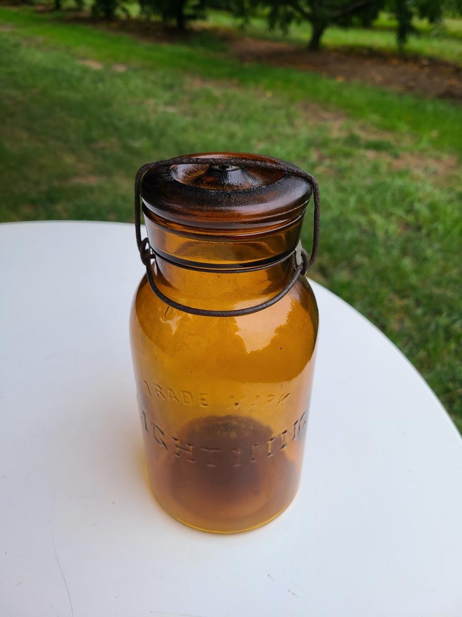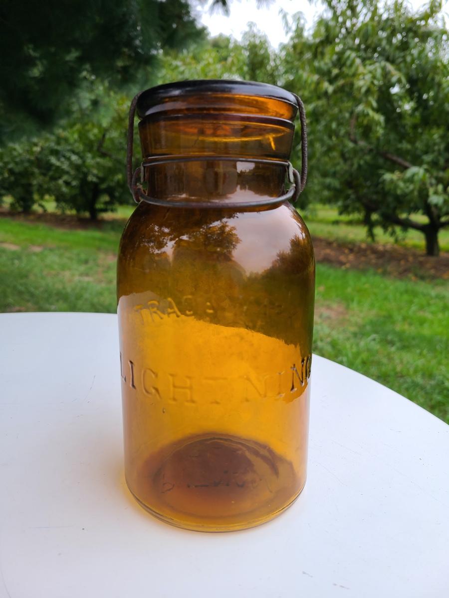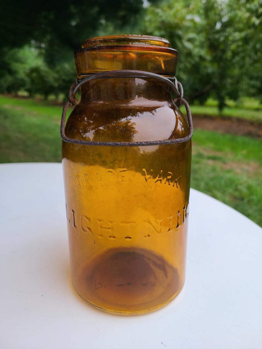Lot 125: Antique/Vintage Putnam Trade Mark Amber Lightning Fruit Jar