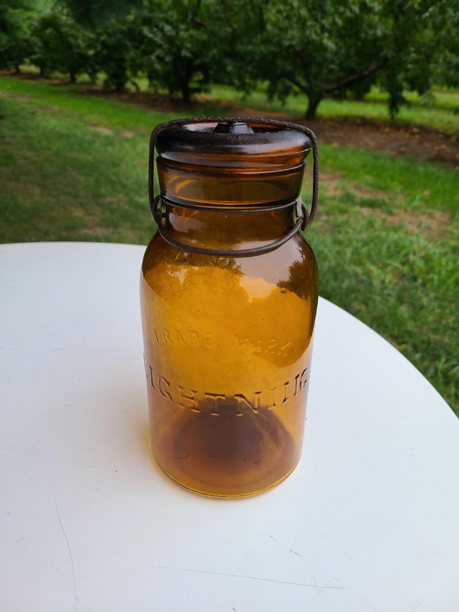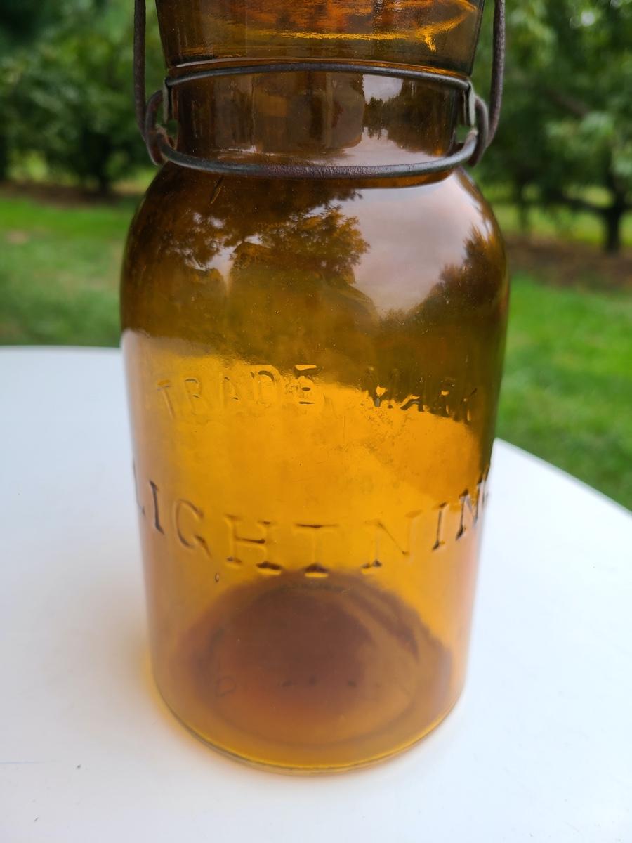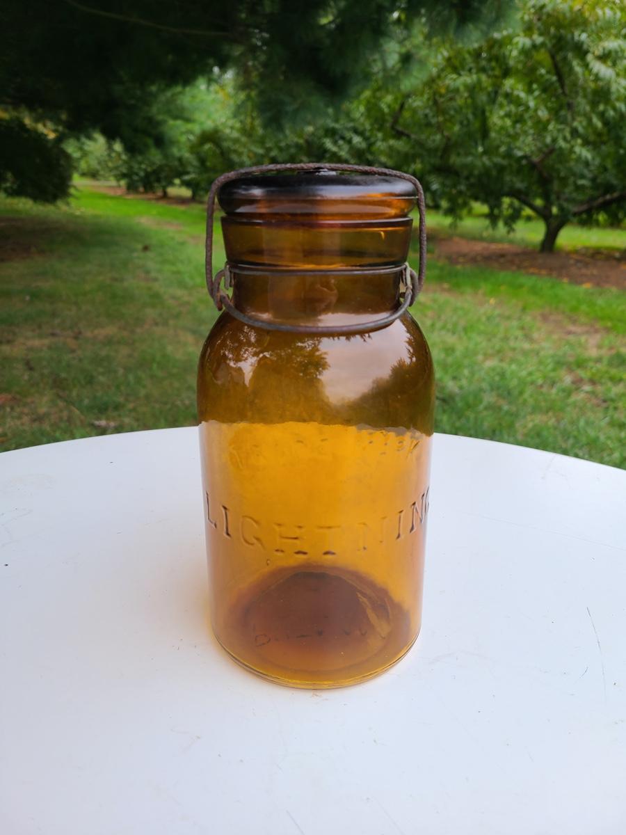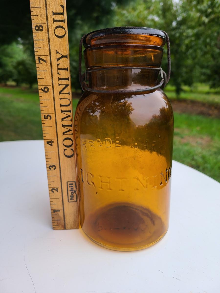 Lot 125: Antique/Vintage Putnam Trade Mark Amber Lightning Fruit Jar