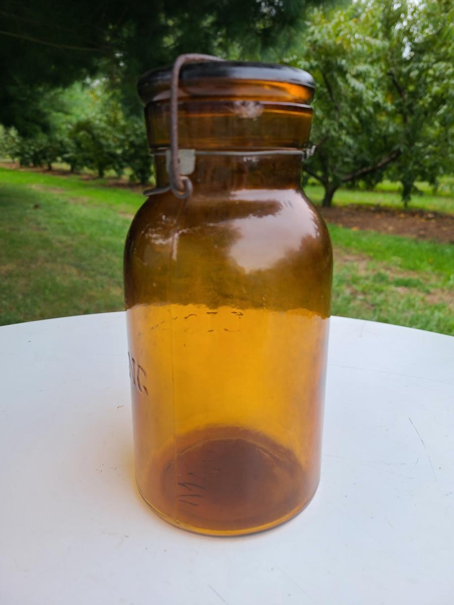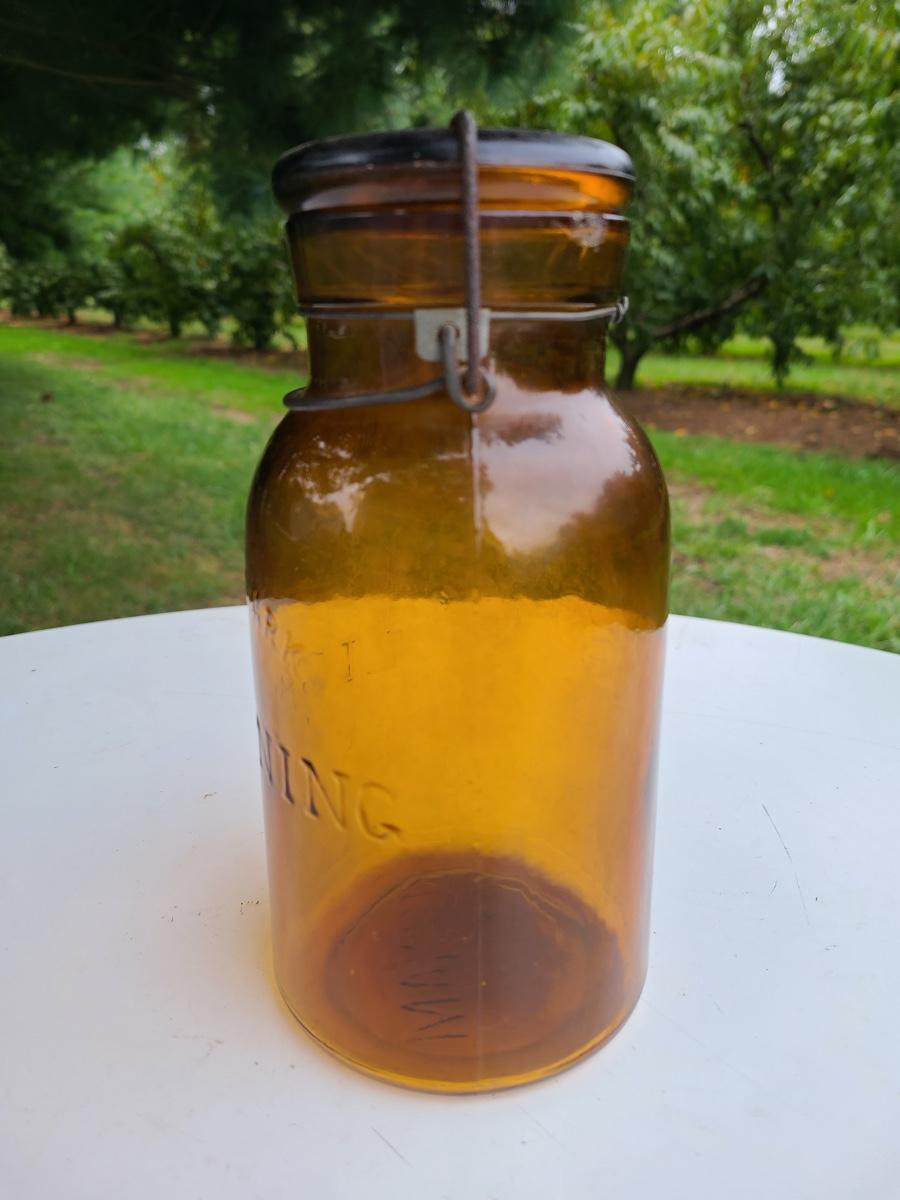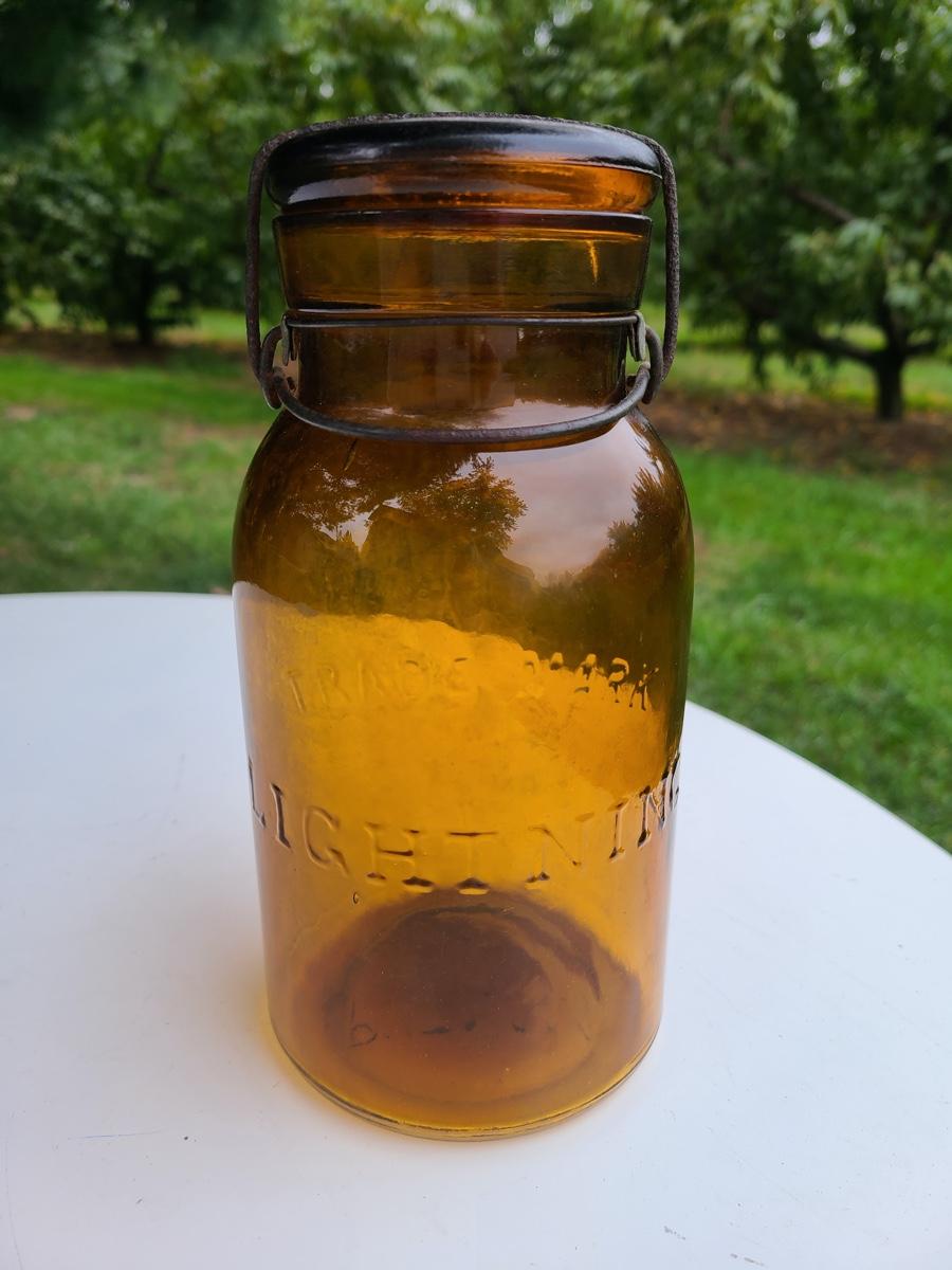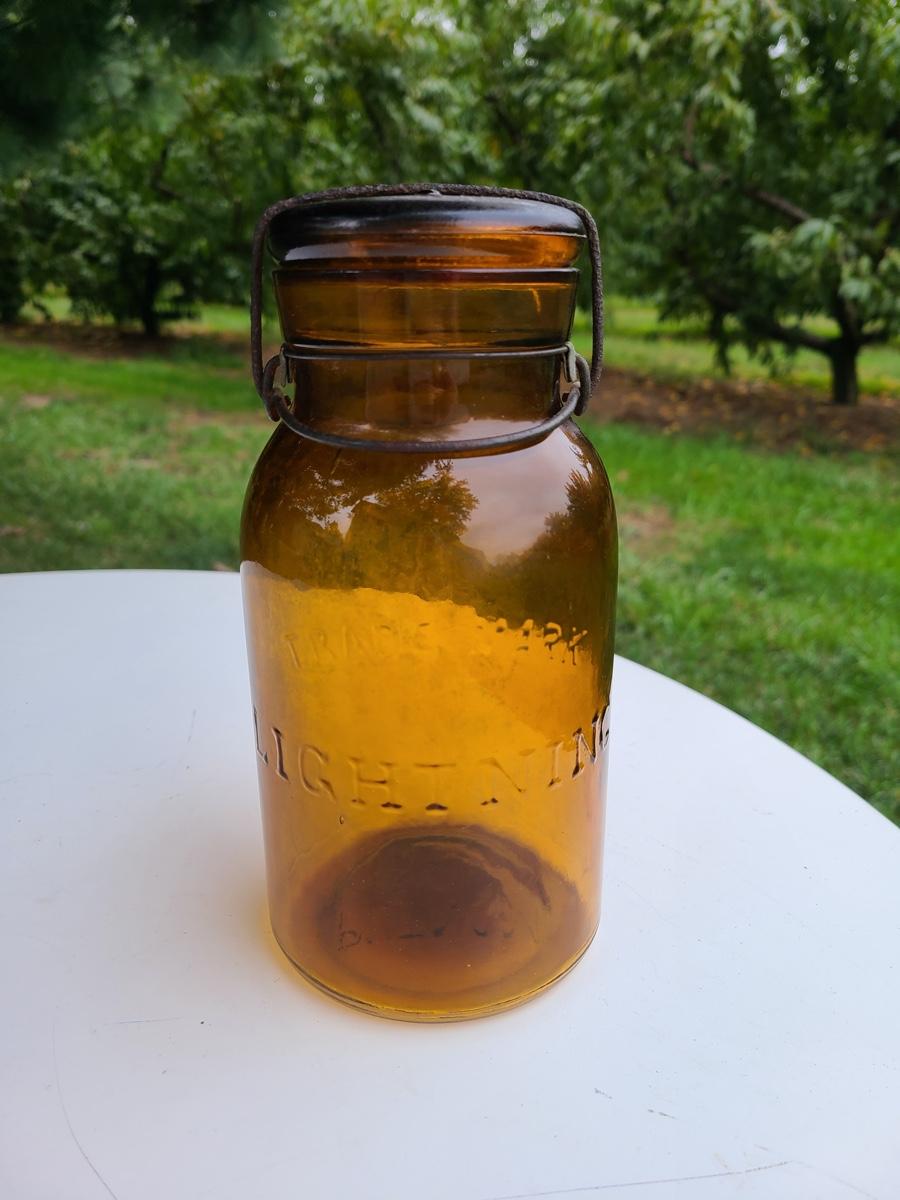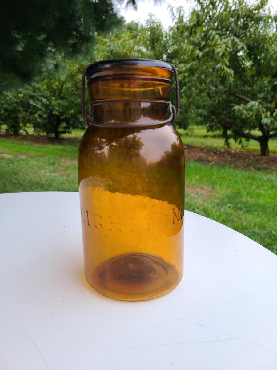 Lot 125: Antique/Vintage Putnam Trade Mark Amber Lightning Fruit Jar