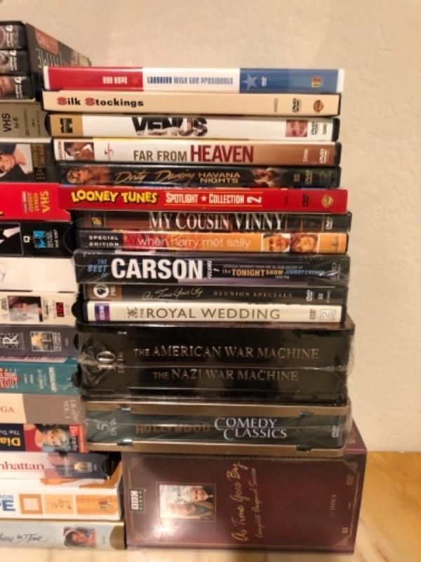 Lot 125. Approximately 36 VHS and DVDs--WAS $25““NOW $18.75