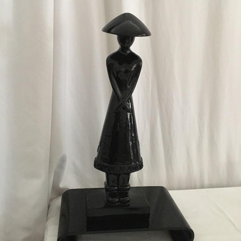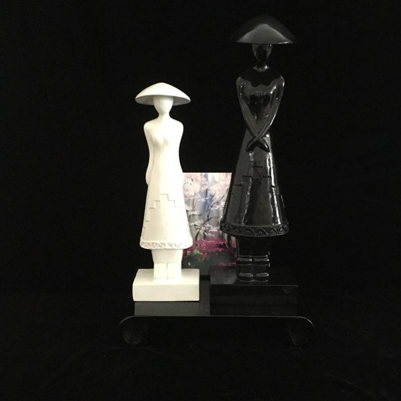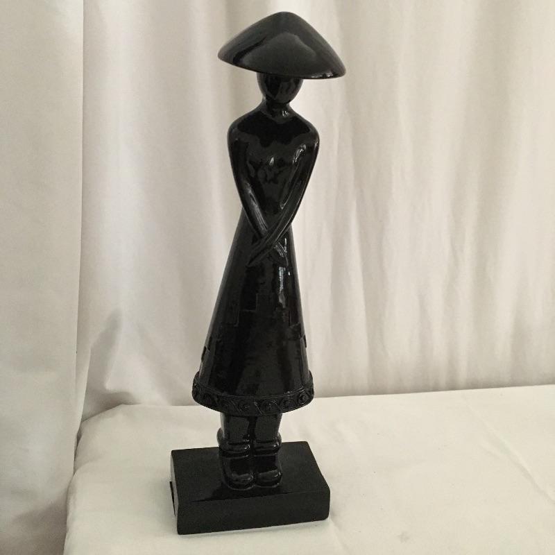Pair of statues and a decorative tile includes one white statue and one black statue. Great pair of statues to add a little international appeal in your home. Black statue measures 17” tall with a 3.5” x 5.5” base which is slightly taller than the white one.
