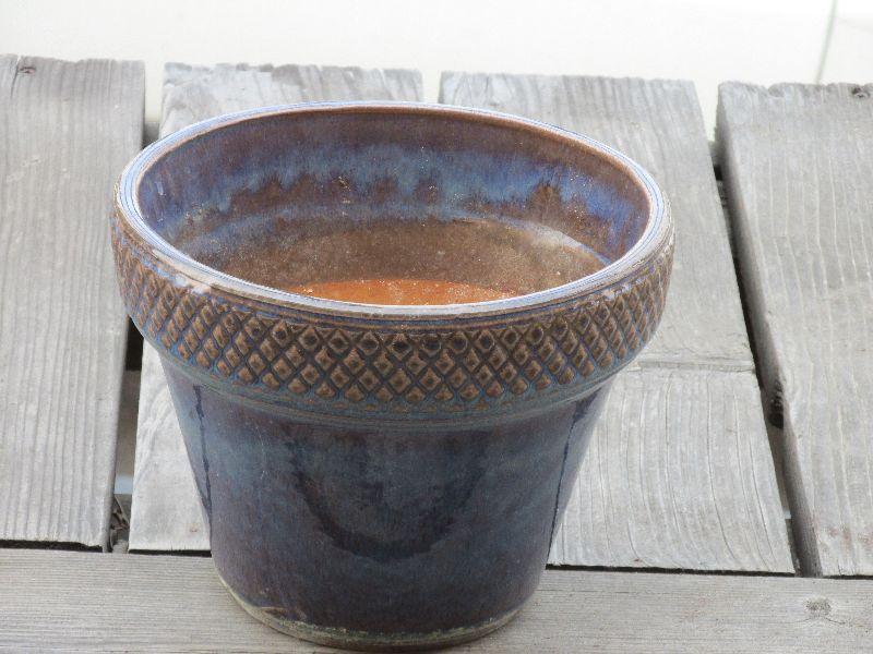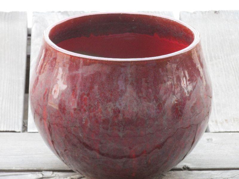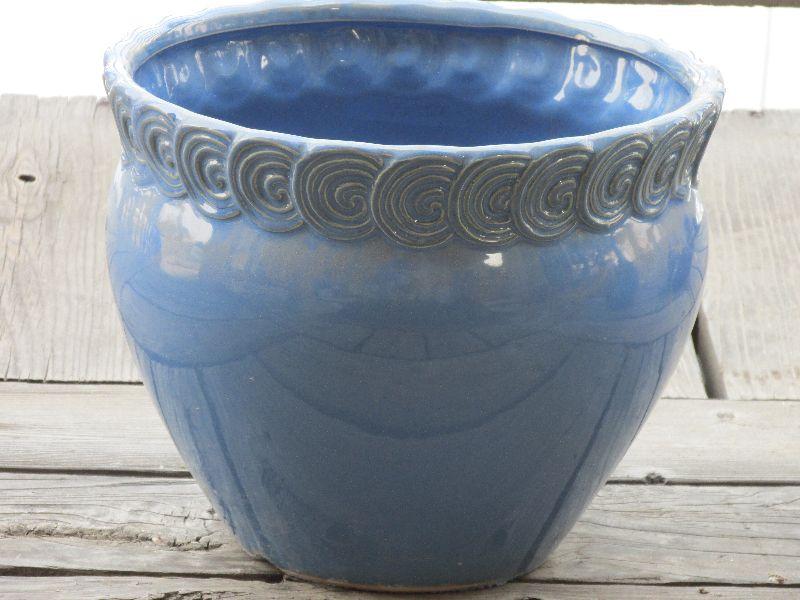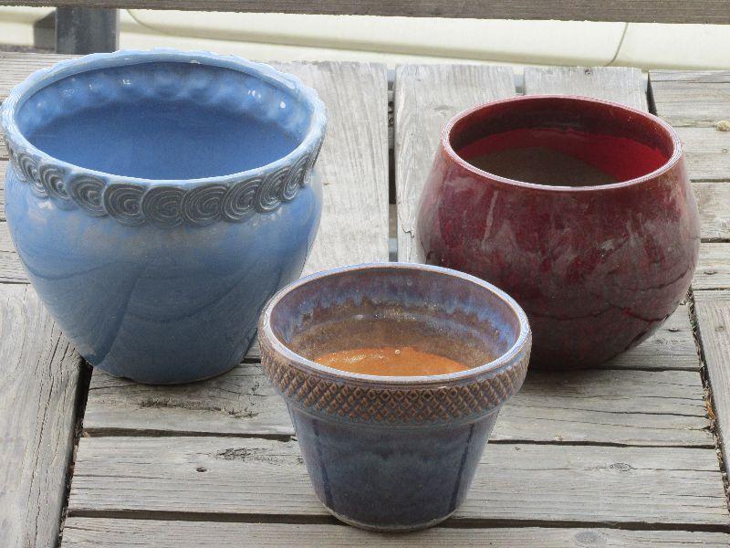Set of Three Ceramic Designer pots. One light blue, one cobalt blue, and one with very nice red glaze.