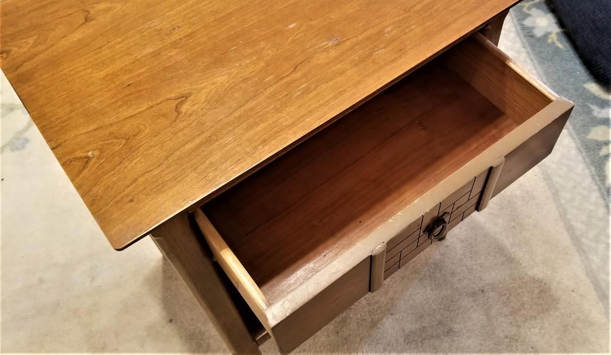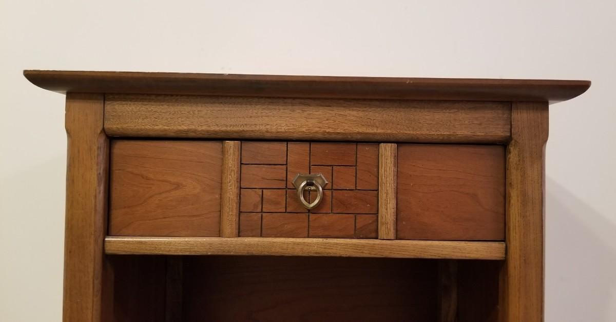 Cute single vintage nightstand - no maker's name - has drawer. Good used condition. 23.5" across, 15.5" deep, 27" tall.