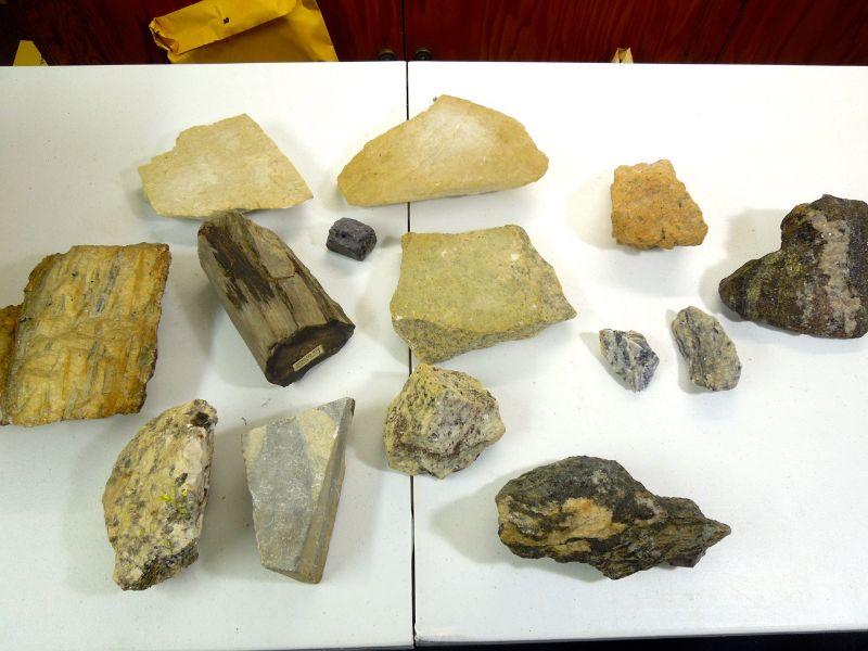 Includes a nice sample of petrified wood, quartz and not sure what else.