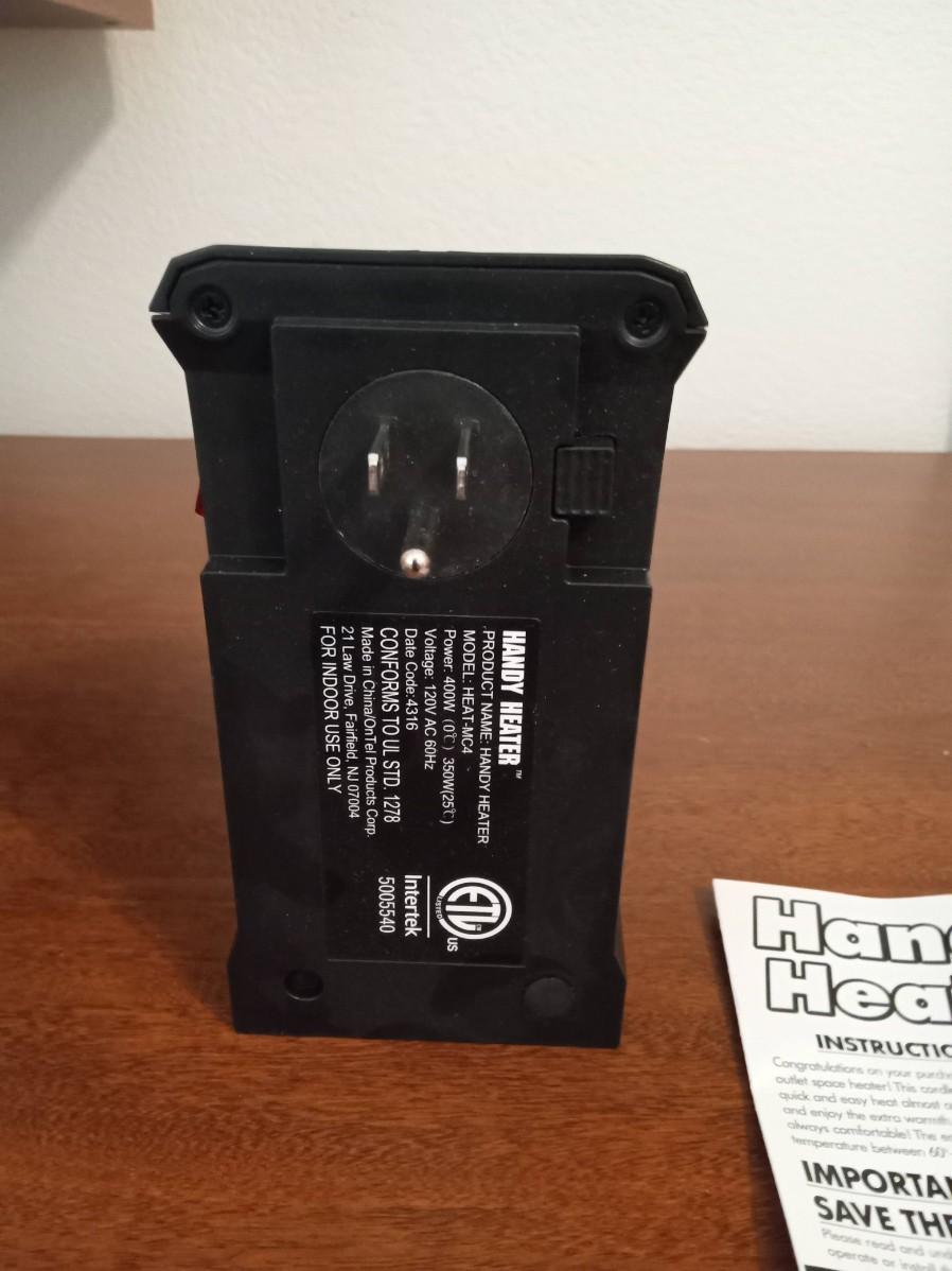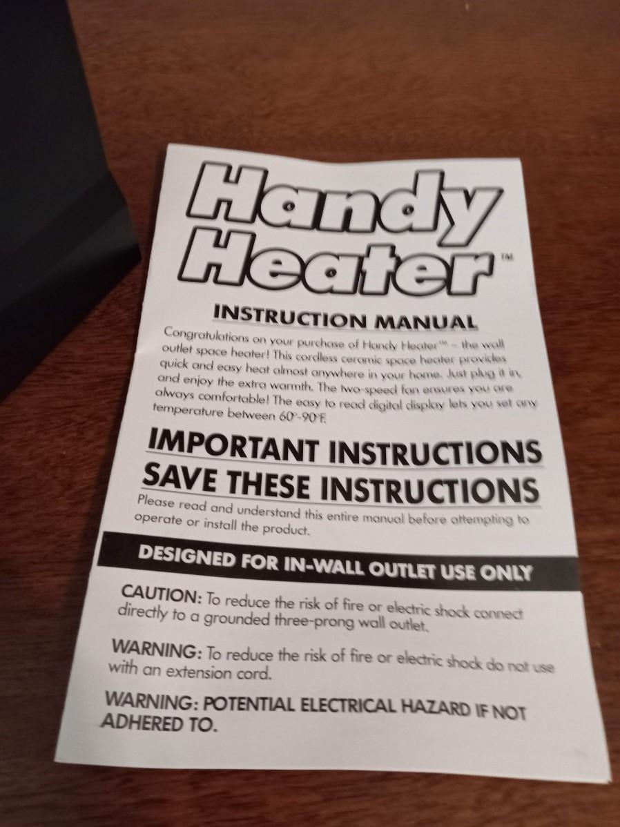 JUST PLUG THE HANDY HEATER INTO AN ELECTRICAL SOCKET AND LET THE HEAT BEGIN