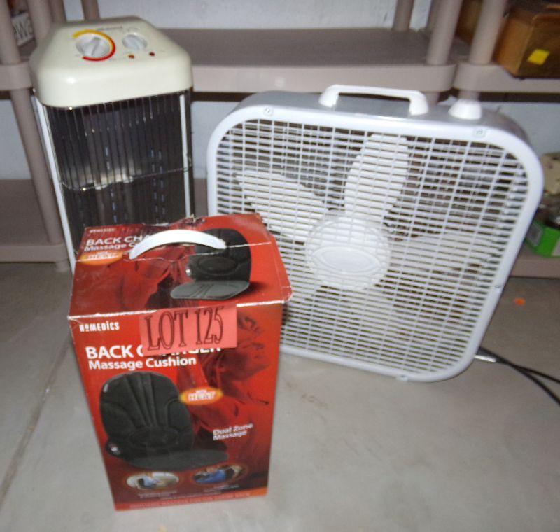 BOX FAN AND HOMEDICS BACK MASSAGER