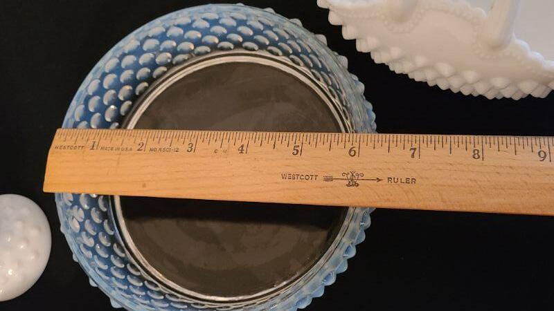 Beautiful lot of Hobnail Glassware. This includes a beautiful larger trinket/jewelry glass case, butter dish, candy dishes and more. Please see all pictures for condition, measurements, and contents of the full lot. CLS