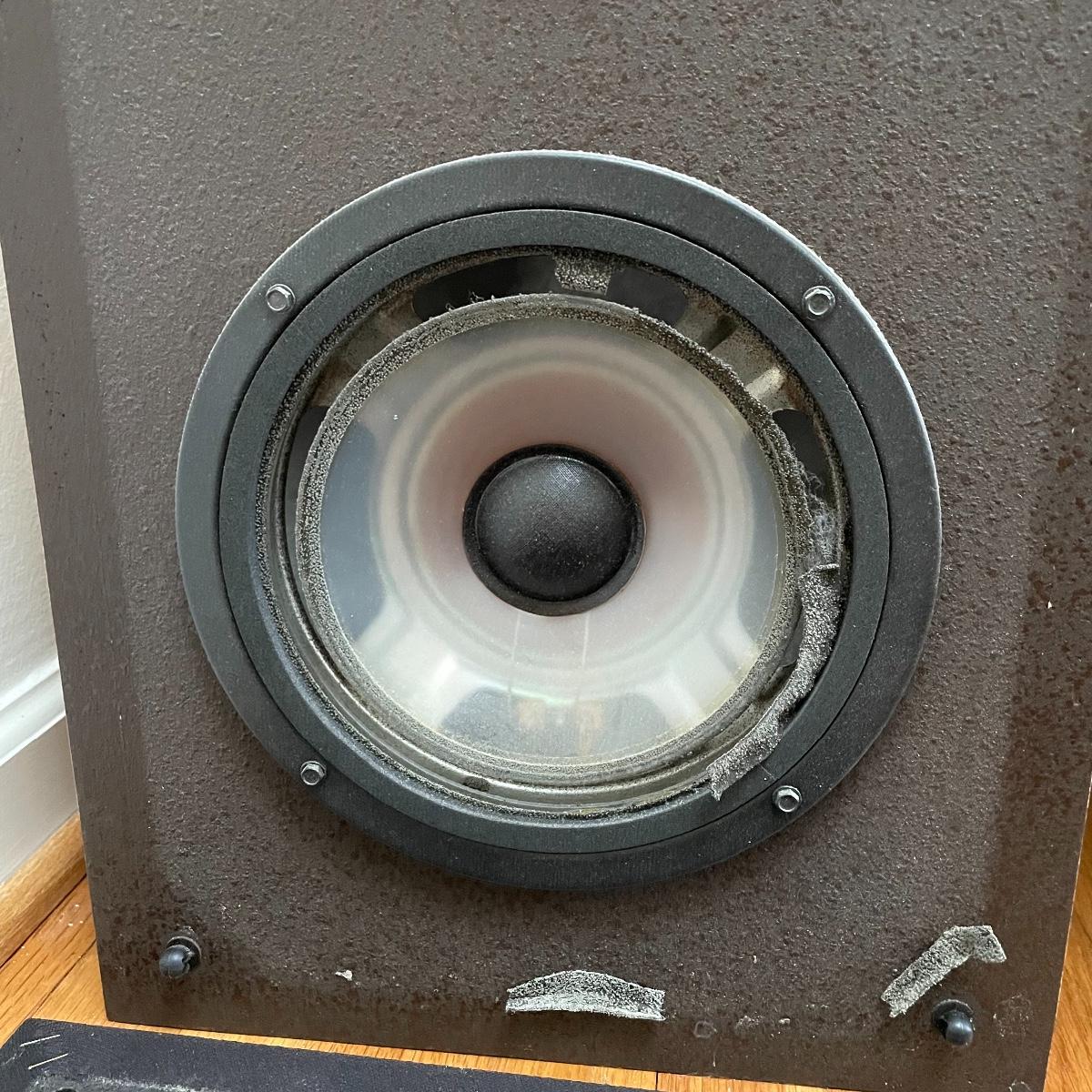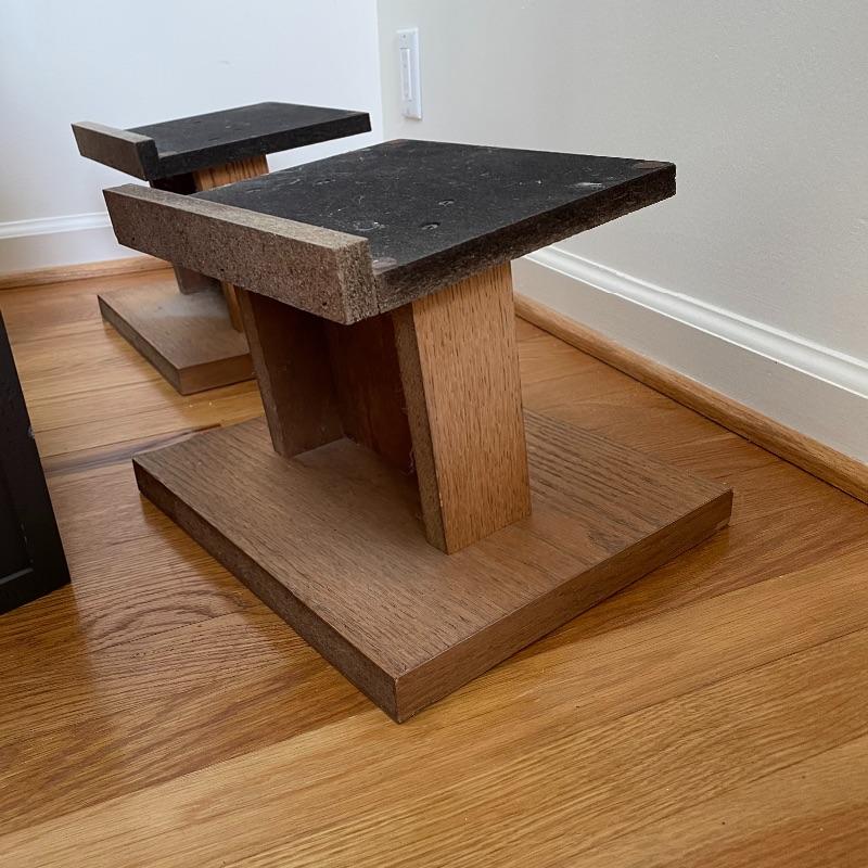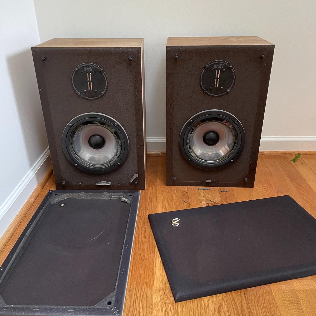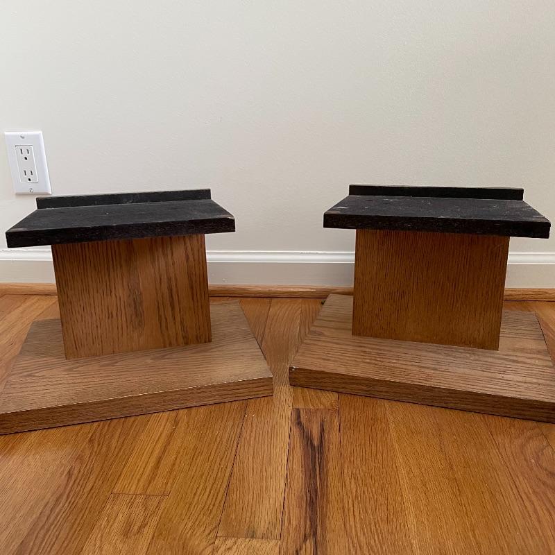 Two nice looking Infinity RSe floor speakers with wooden stands. Both speakers show a little sun bleaching, one is more pronounced than the other. Stands appear to be pressed wood. Speakers appear in great shape on the outside, but show some needed repairs to the woofers when covers are removed. One speaker alone measure 13” x 10.25” x 20”. The stands add about 8.5” to height. See images. Shipping available. Each Speaker has a substantial weight and stands are not connected. Please call UPS with dimensions at 828-252-6930 for a shipping quote prior to bidding.