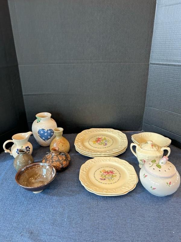 Lot 125 Misc pottery vases , crooksville china co. dishes kitchen items