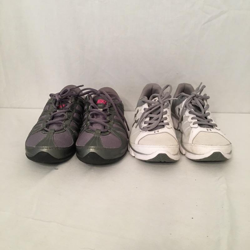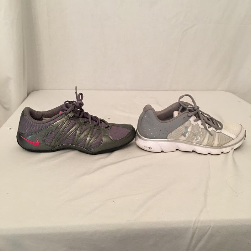 Ladies sports wear and shoes includes shoes by Nike, Under Armour, New Balance and also included are some sport wear by Calvin Klein, Chico’s, Onieta, Jones New York, The Tog Shop and more. See pictures for sizes. Get ready for your workout or just running about town.