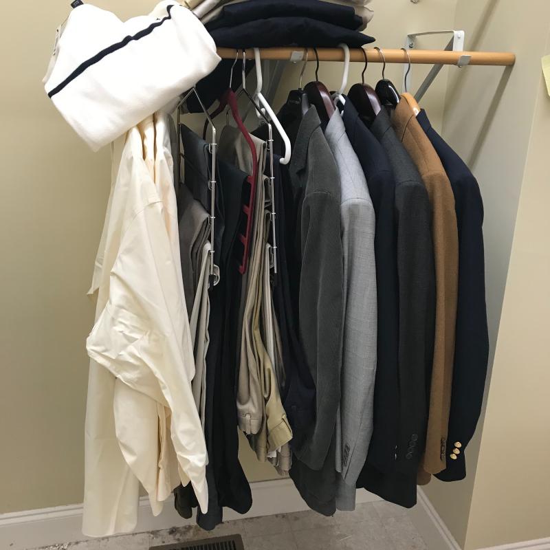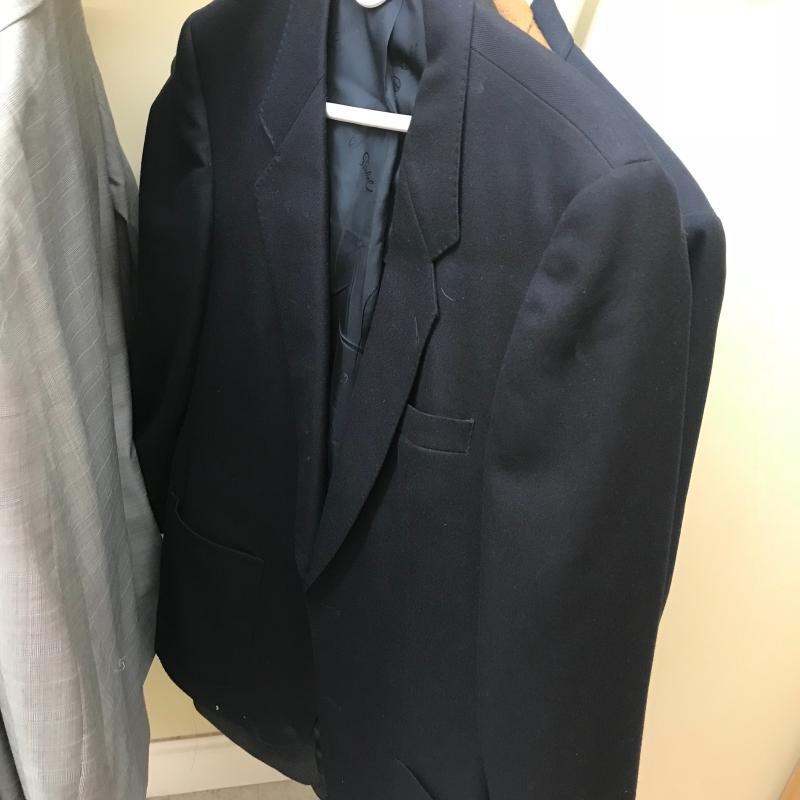 Suites by Jos A Banks and sports jackets by Orvis and Saks. No sizes found but an XL. Most of the Slacks are 46” Long and some still in packaging. Local pick up only.