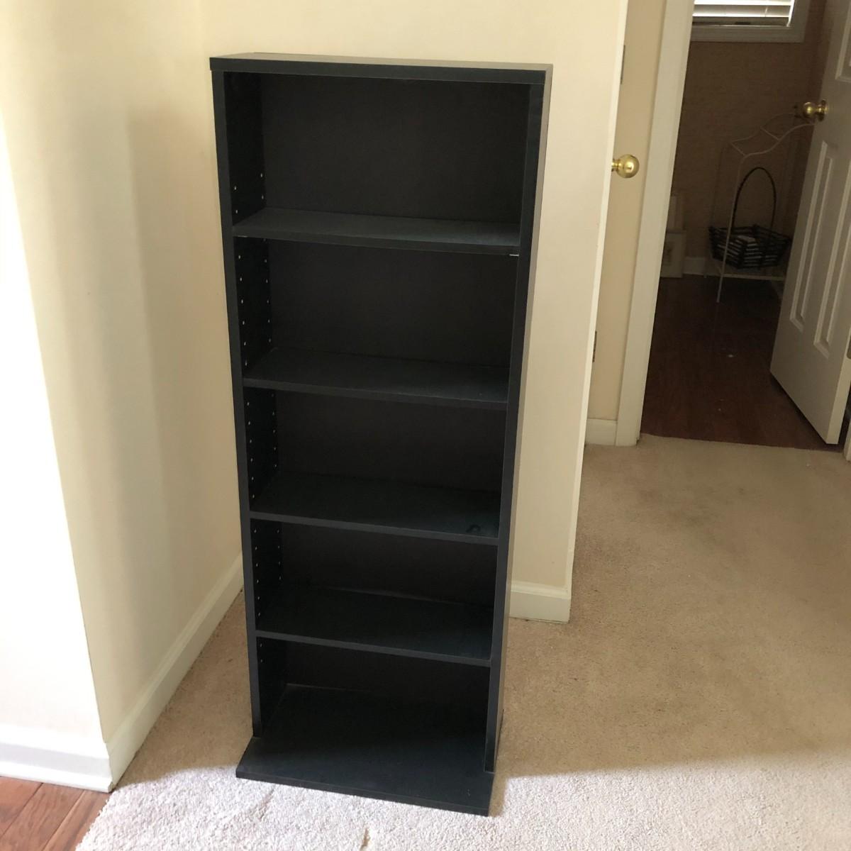 This bookcase is in very good condition. It is made of pressboard with adjustable shelves and stands 44.75" tall and 17" wide.