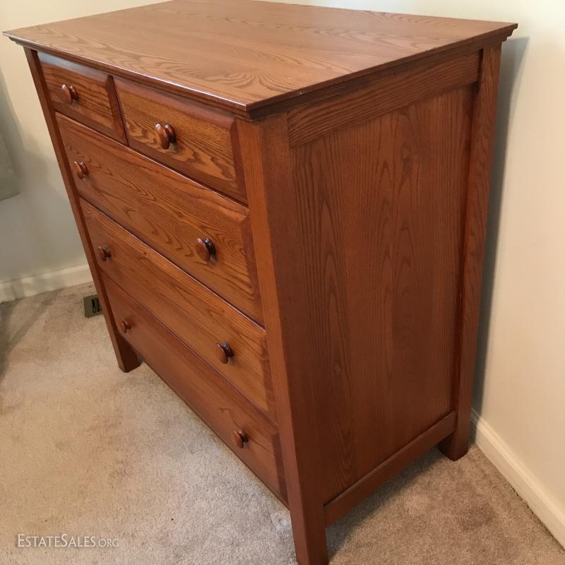 Beautiful, solid "Vermont Tubbs" dresser, appears to be built from oak with pine drawers. Quality craftmsmanship and hardware. Would be perfect for a small space or child's bedroom. 36"l x 19"w x 35.5"h. See photos for details.