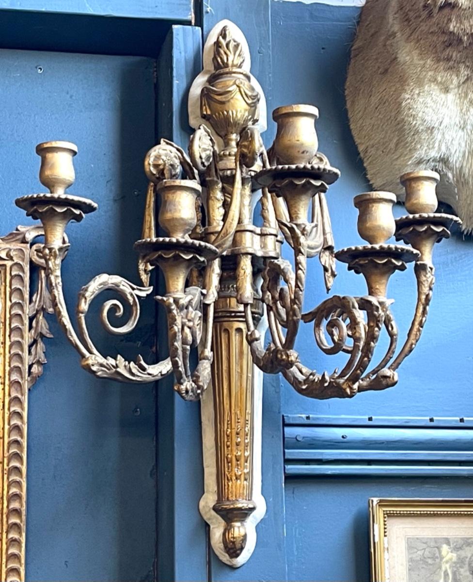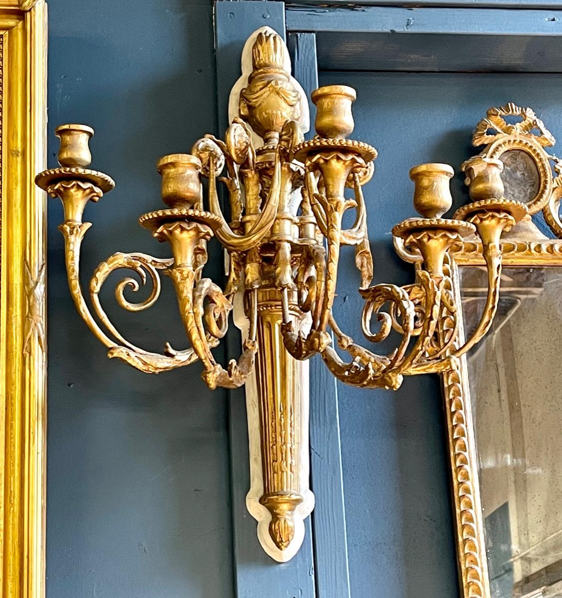 LOT 125 - Pair Antique Wood and Gesso Gilt Wall Candle Sconces