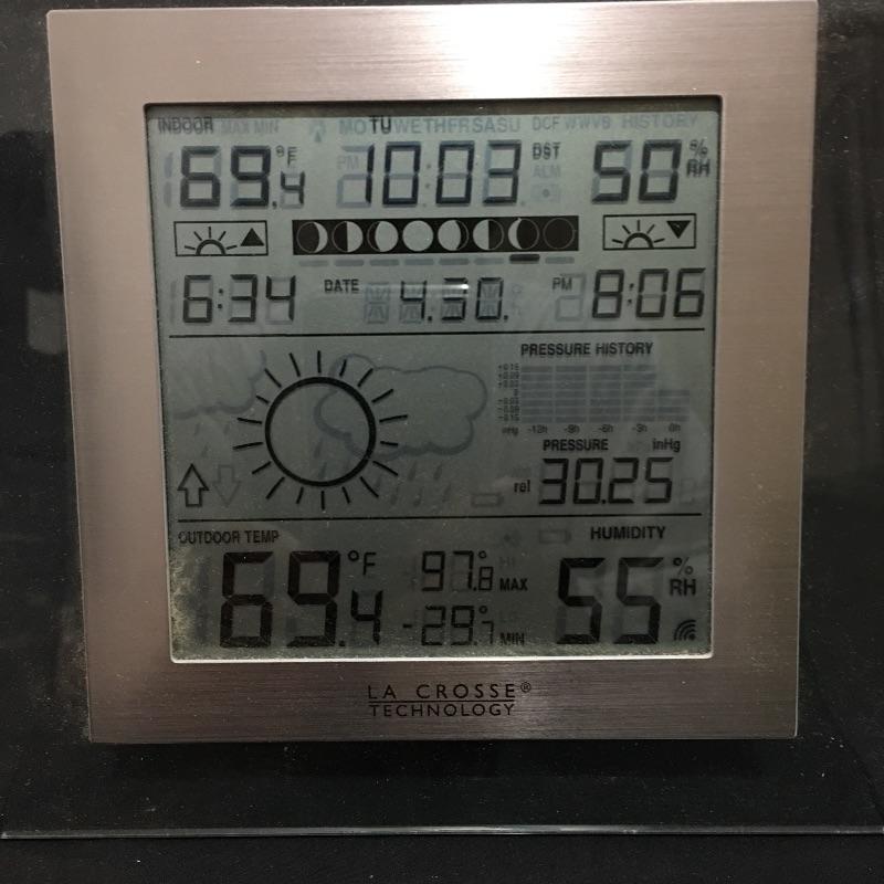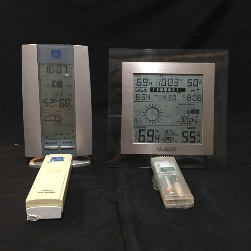 La Crosse and The Weather Channel weather stations with outdoor temperature sensors.