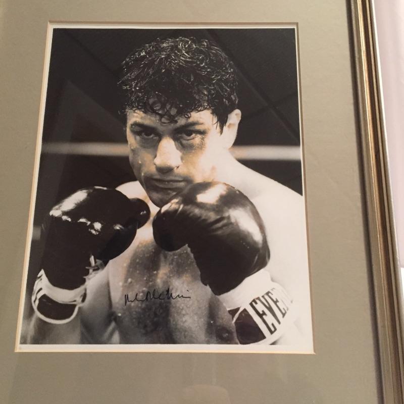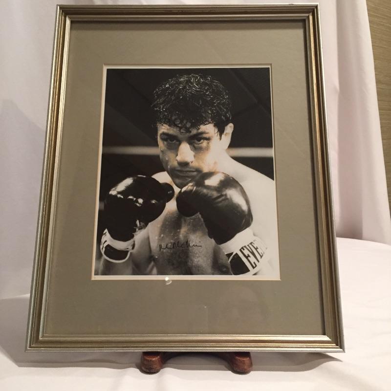 Framed, matted and signed photo of Robert De Niro. Appears to be from the movie Raging Bull. No COA. Frame measures 15” x 13”. Shipping Available.