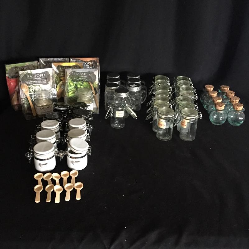 Plethora of Containers. A Great Assortment of Containers for all your Spices and More. Tallest Container Measures 3.5” Tall. One collection actually has salt blends in them.