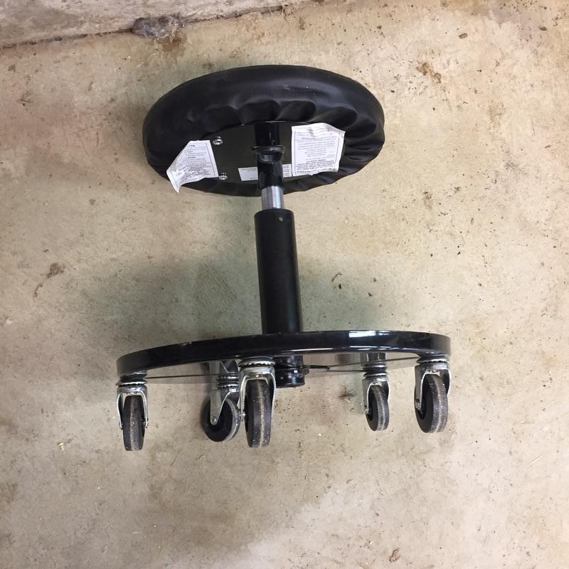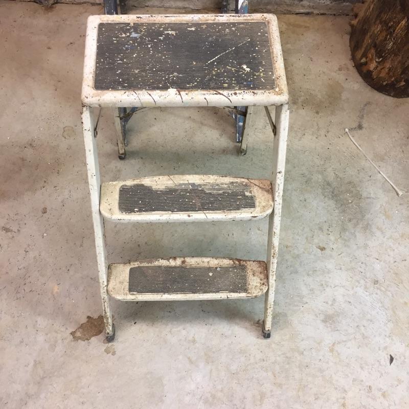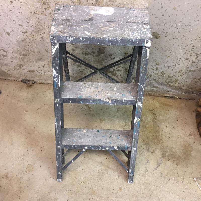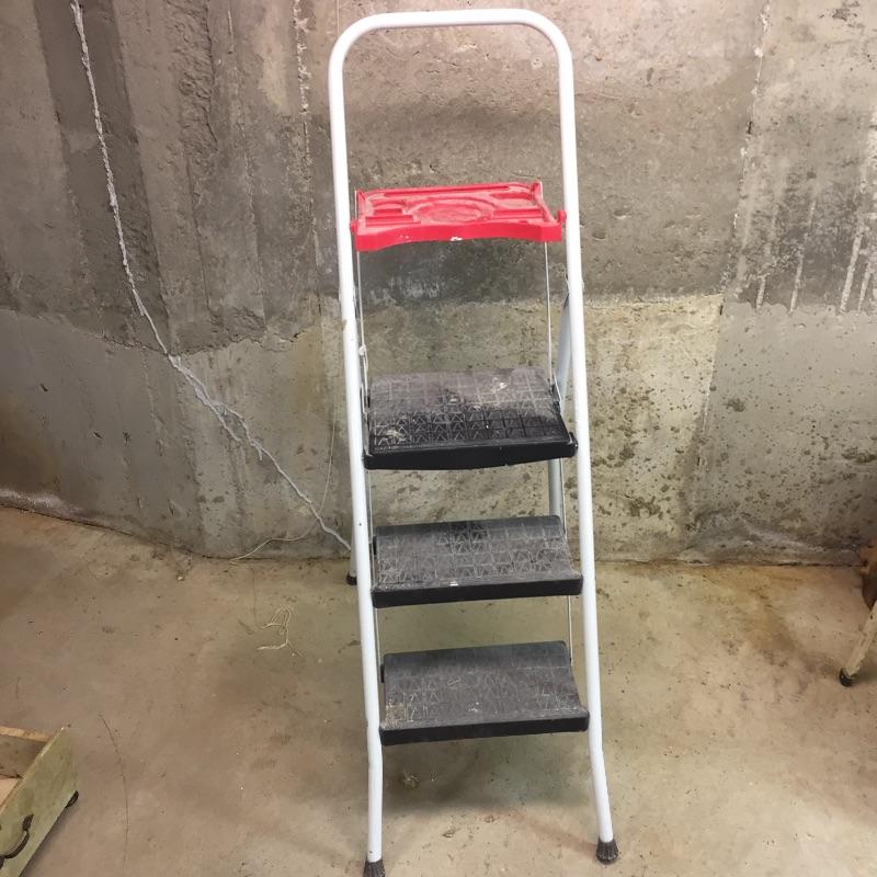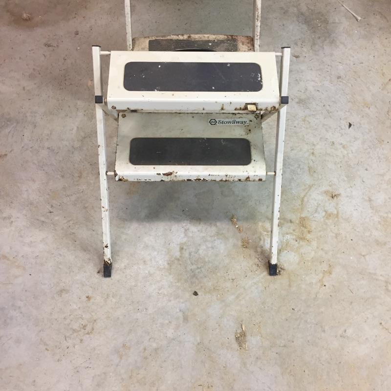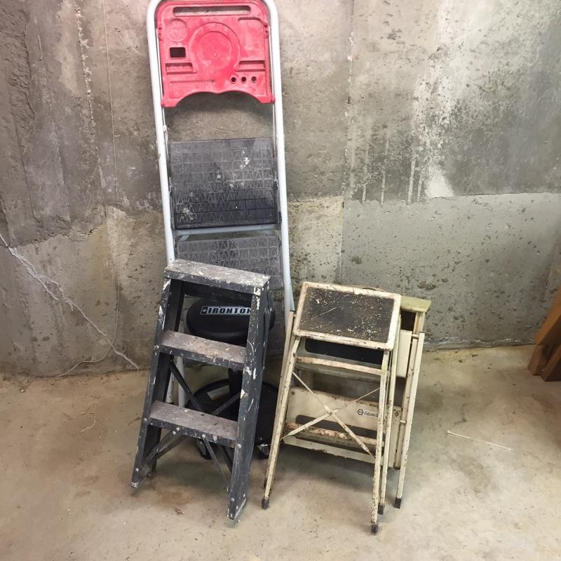 Three small step ladders , one rolling stool , drawer with wheels and one stepladder that measures 28.5” at last step. For those hard to reach spots this lot has you covered.