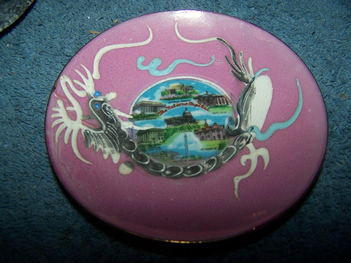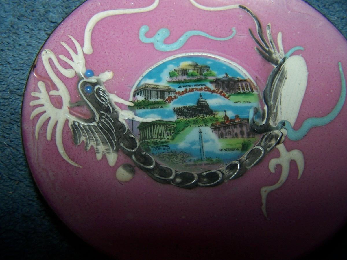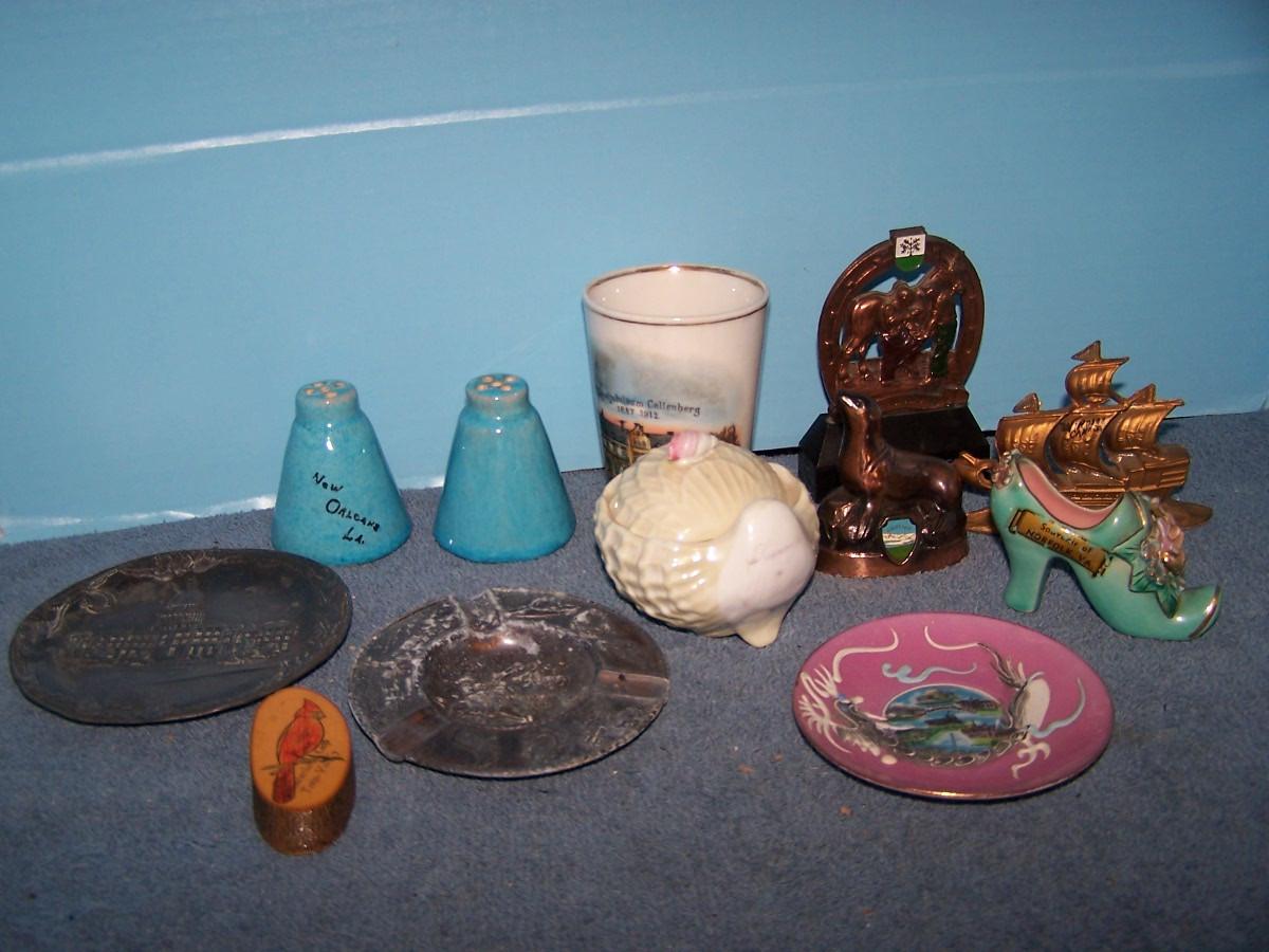 THESE ARE GREAT VINTAGE SOUVENIRS!!! US/INTERNATIONAL PLACES... SEAL IS 2 3/4'' TALL... METAL TRAYS HAVE TARNISH AND SPOTS... OTHERWISE. LIGHT WEAR..
