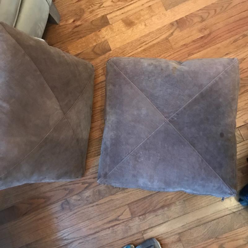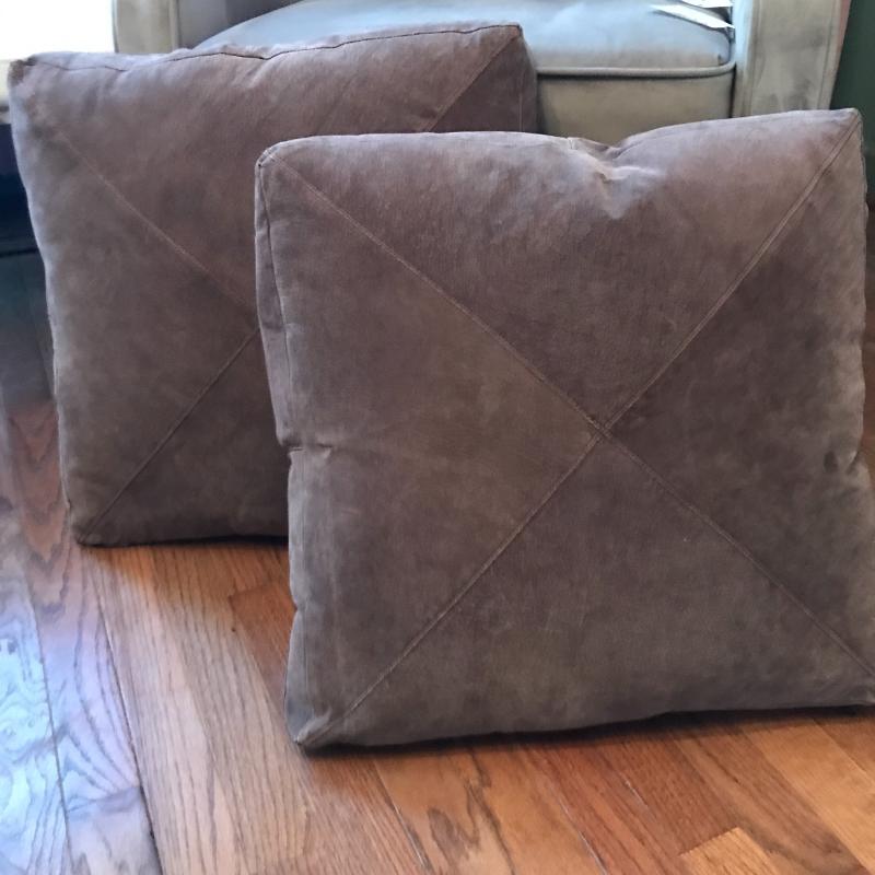 Two like-new brown suede 20" x 20" throw pillows. Two new decorative pillow covers in same size to change up your look. Please note that one of suede pillows has tear in side and small stain. See pic. Shipping or local pick up in Flat Rock, NC.