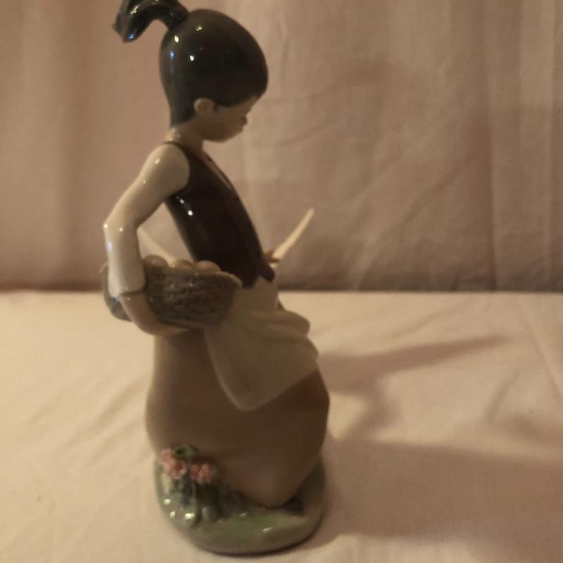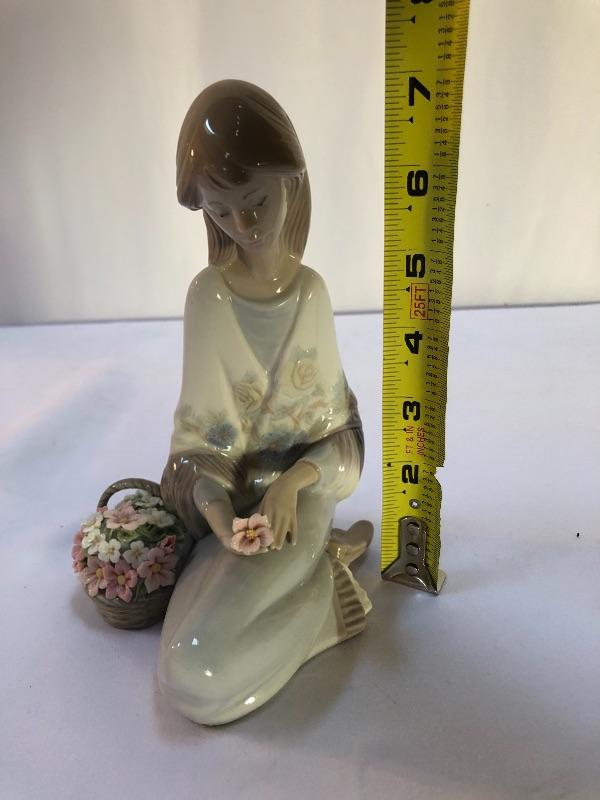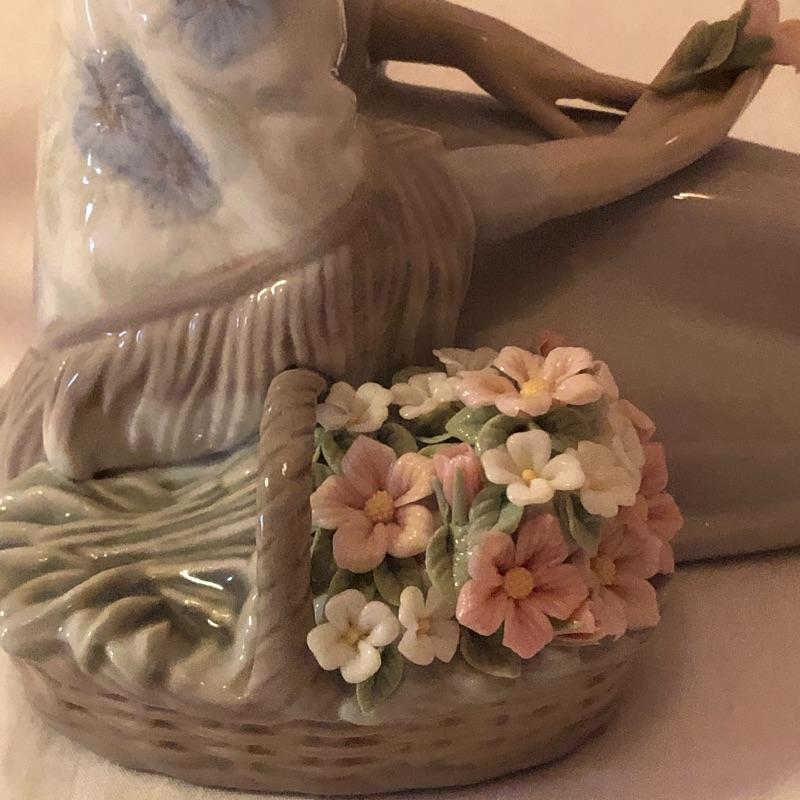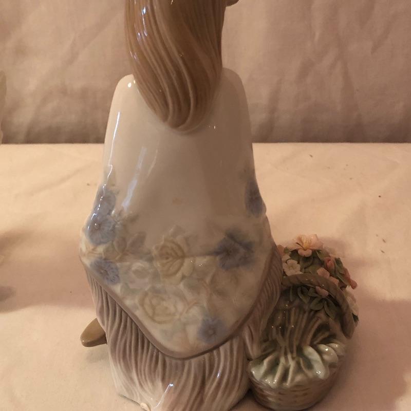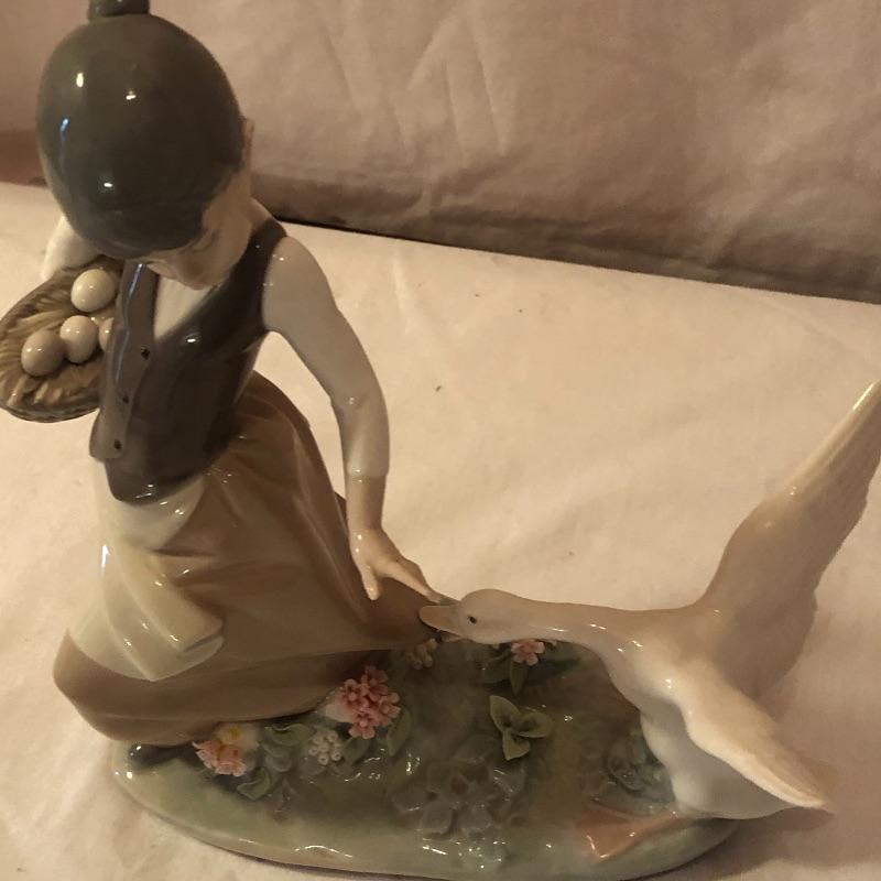 This lot contains two young women Lladro figurines. One woman is holding a flower and the other is running through flowers being chased by a goose. Shipping Available.
