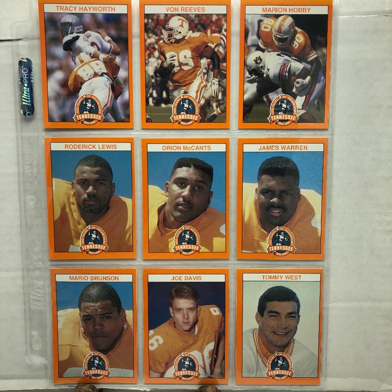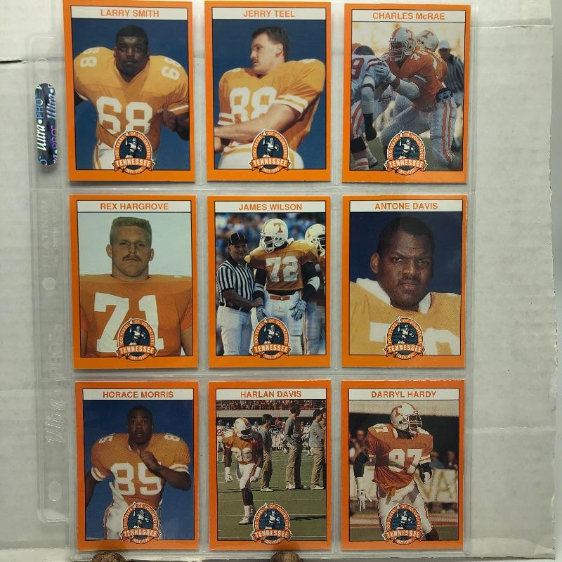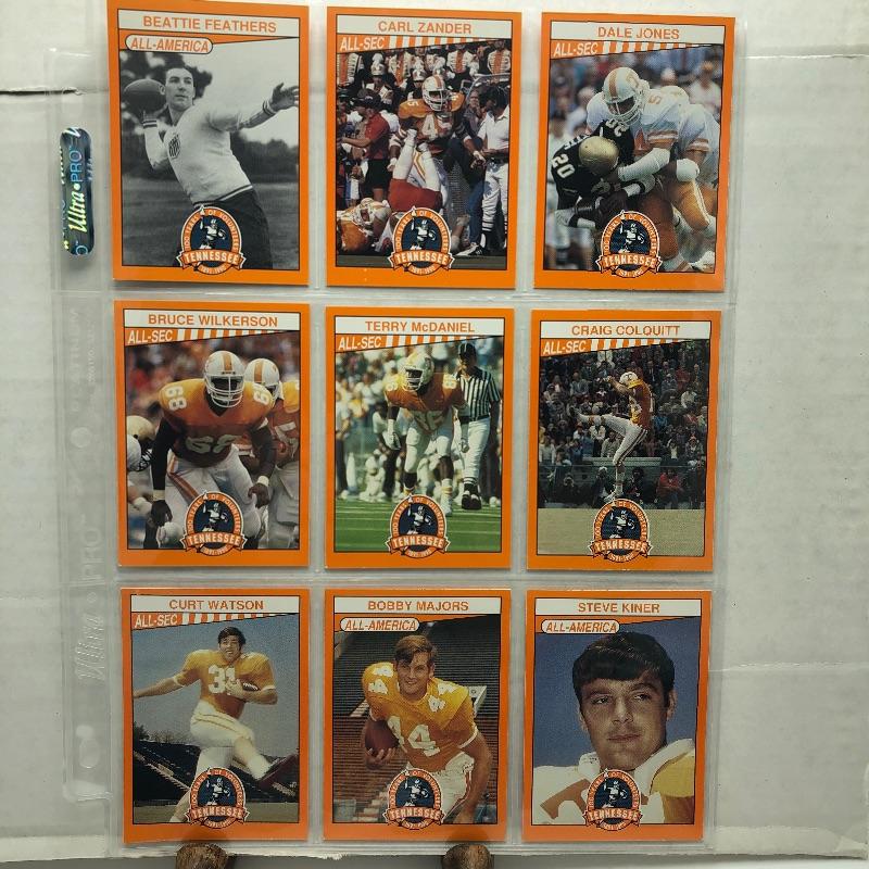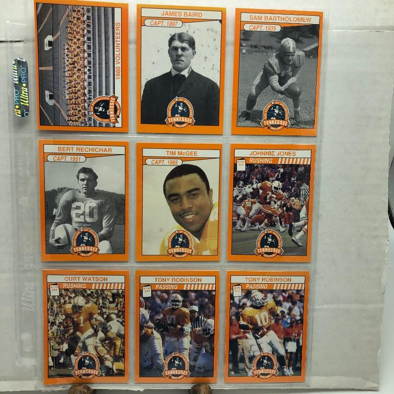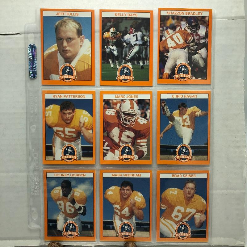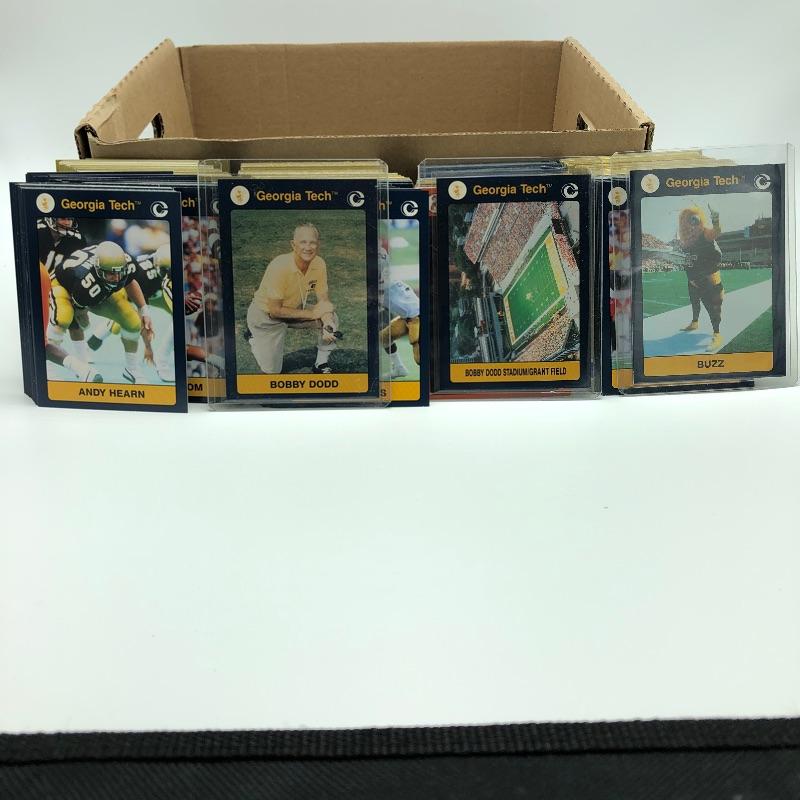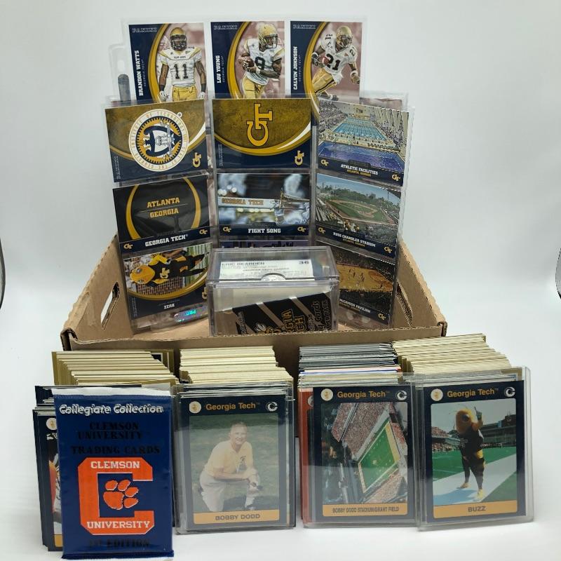 Georgia Tech, Alabama, Clemson, oh my! Georgia Tech '91 cards are featured most prominently in this lot with a complete set of 200 cards. For the die hard Clemson fans there is an unopened pack of Clemson University 1st Edition trading cards.