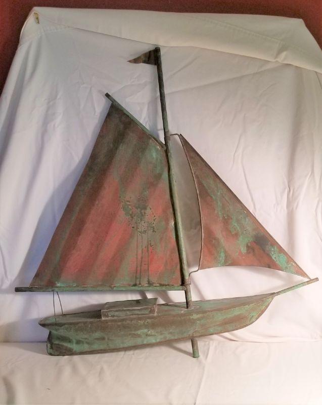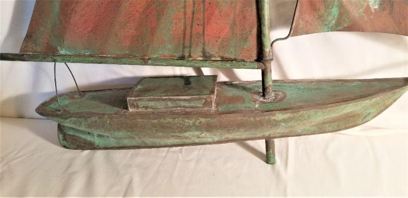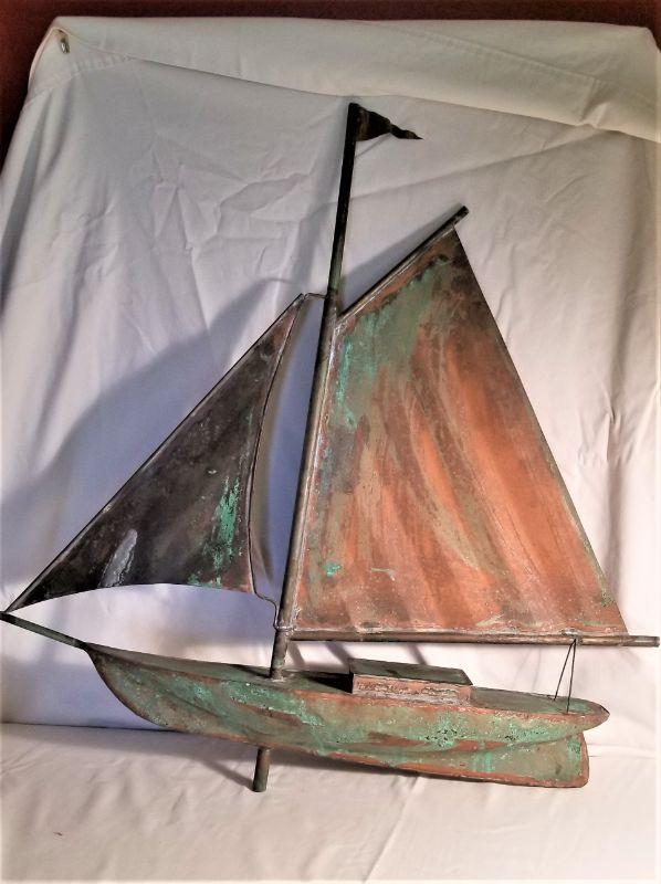 Lot #125 Vintage Copper Weather Van in the form of a Sailboat - great item