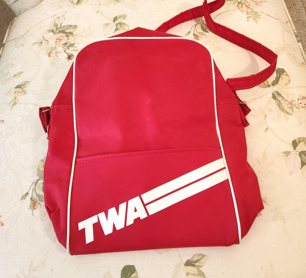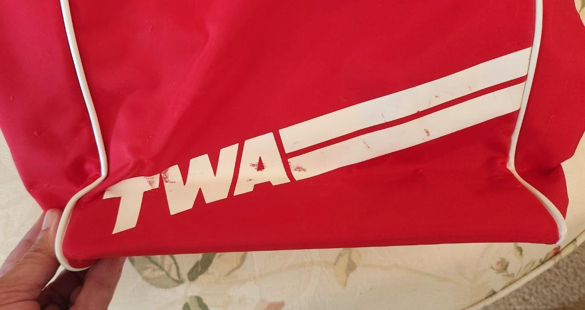 Vintage TWA Airline travel bag - surprisingly good condition. 14" tall. Zipper good - name/address space blank.