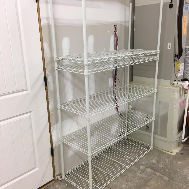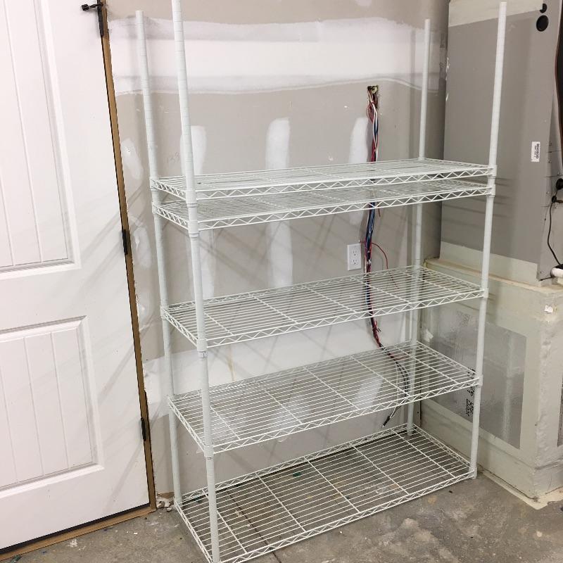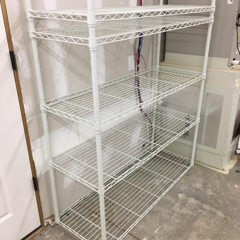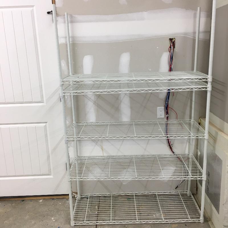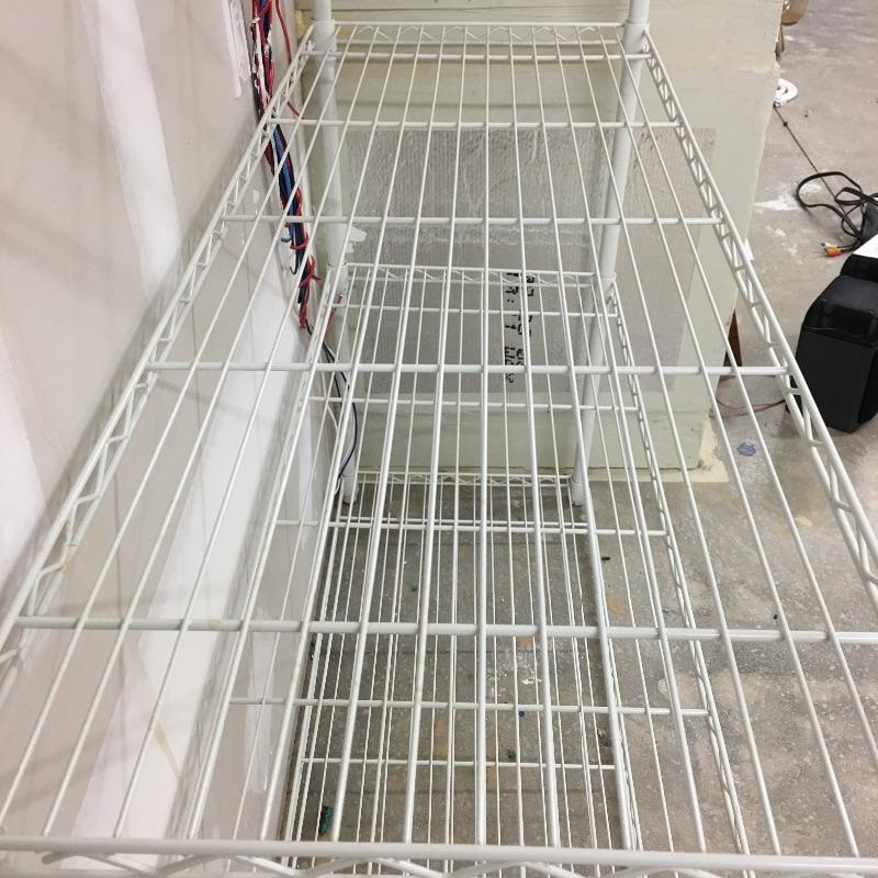White metal shelving unit measures 18” x 48” x 74.5”. A great solution to all your storage needs with this nice sturdy shelving unit. Shelving unit measures 18” x 48” x 74.5”.