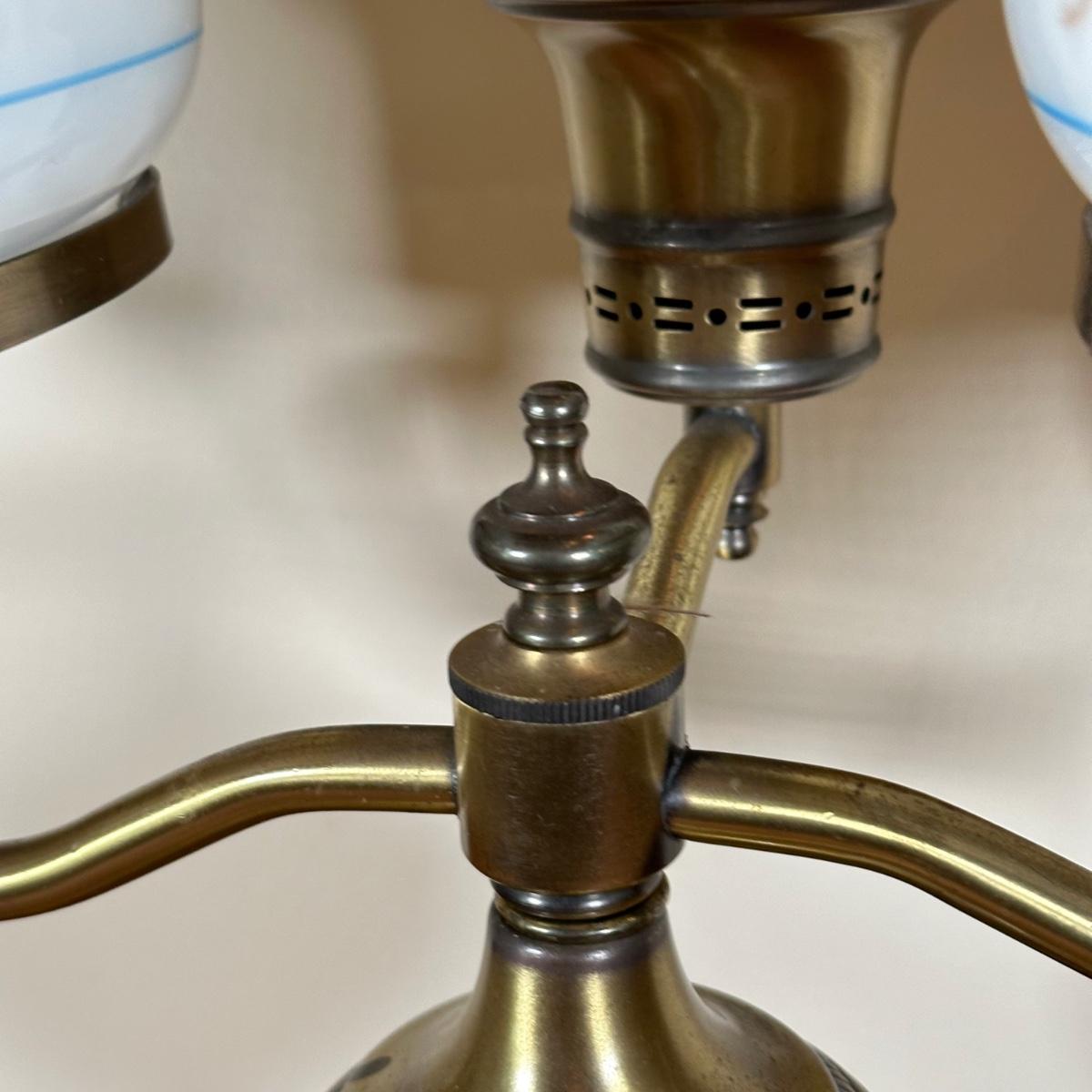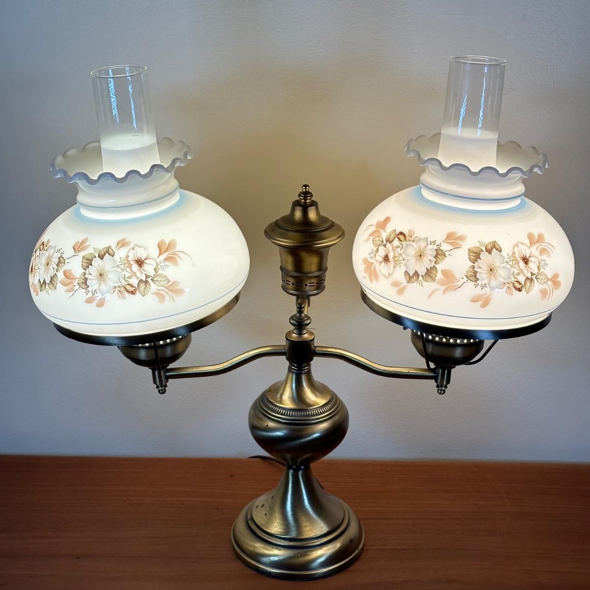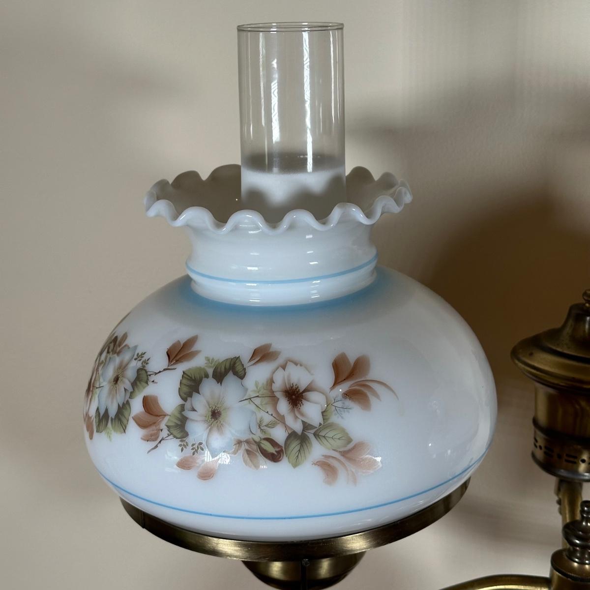 LOT: 125H: Vintage Hand Painted Brass Hurricane Lamp