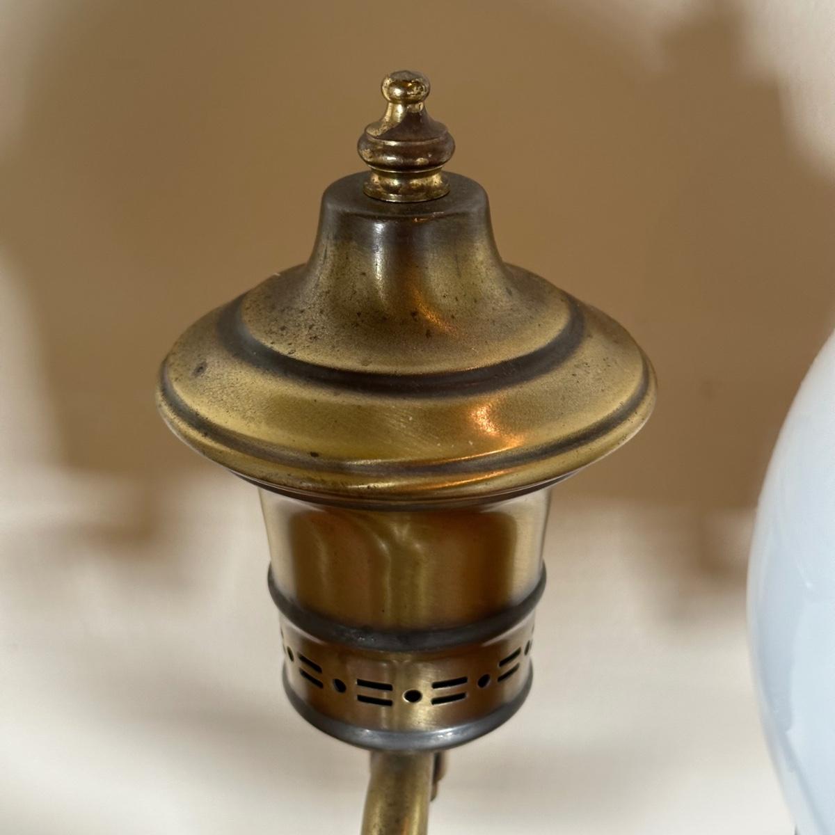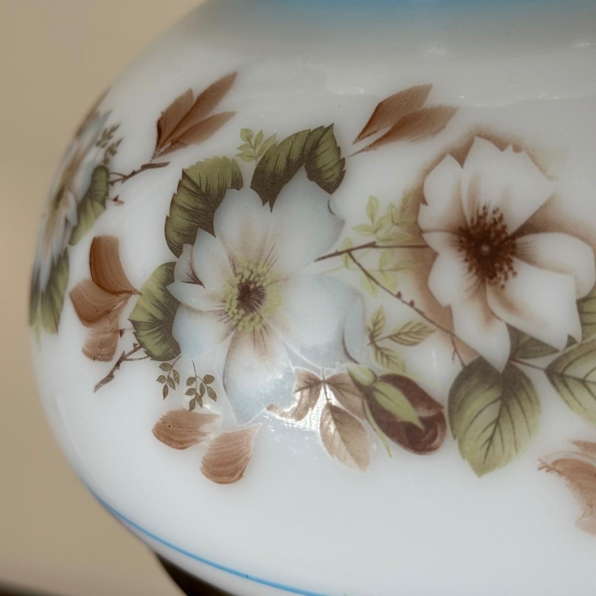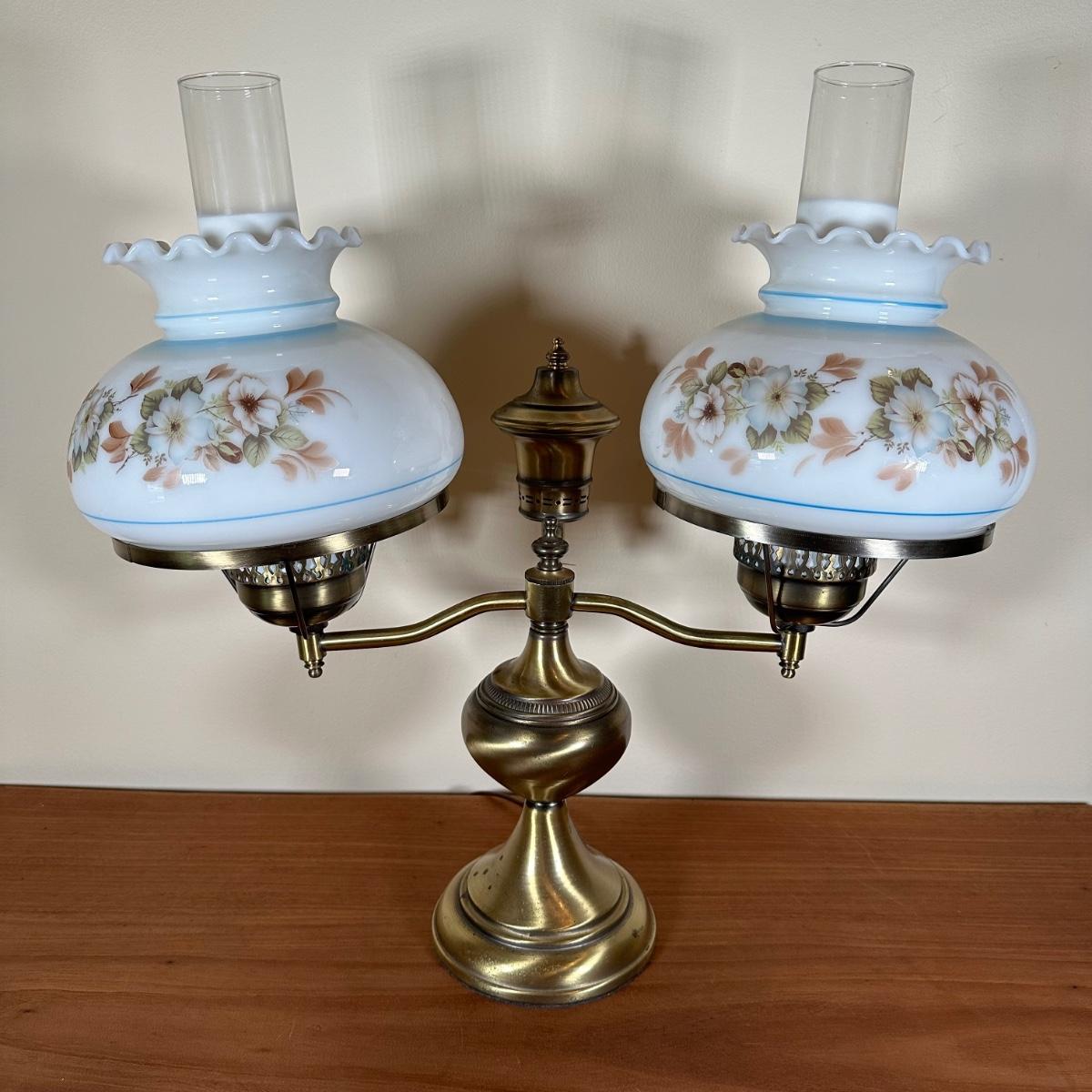 LOT: 125H: Vintage Hand Painted Brass Hurricane Lamp