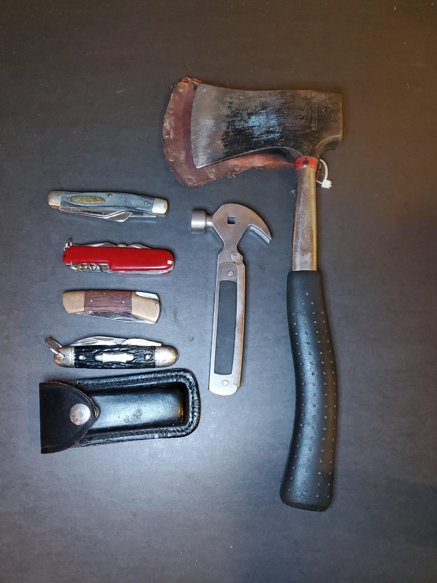 Lot 125XYZ: Pocket Knives, Boyscout Hatchet and More