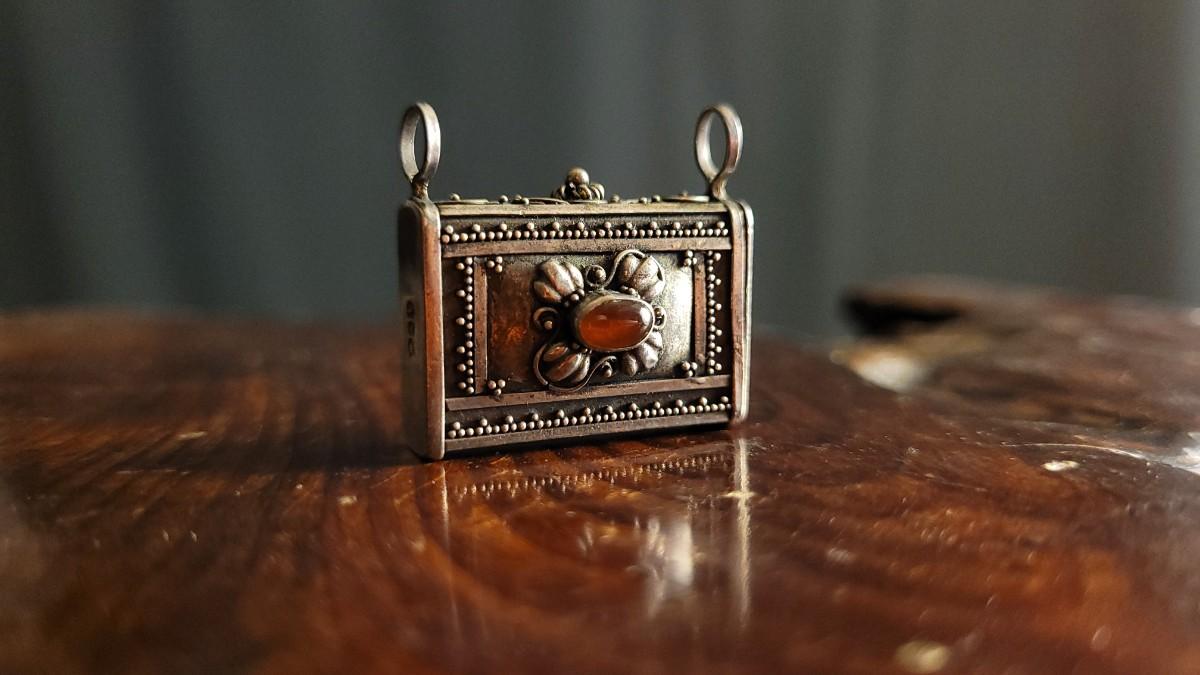 Lot 126: Vintage .925 Sterling Silver Jewelry Necklace Trinket Box PENDANT w/ Jewel