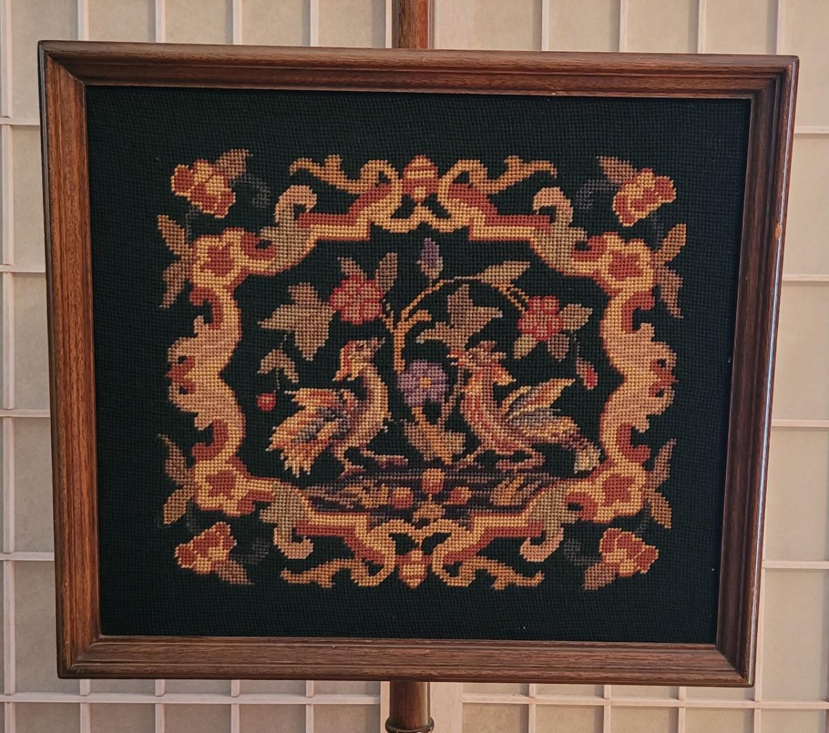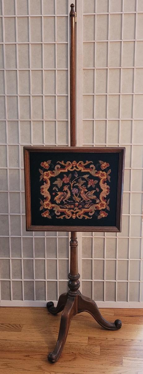 Lot 126: Antique Needlepoint Fireplace Pole Screen
